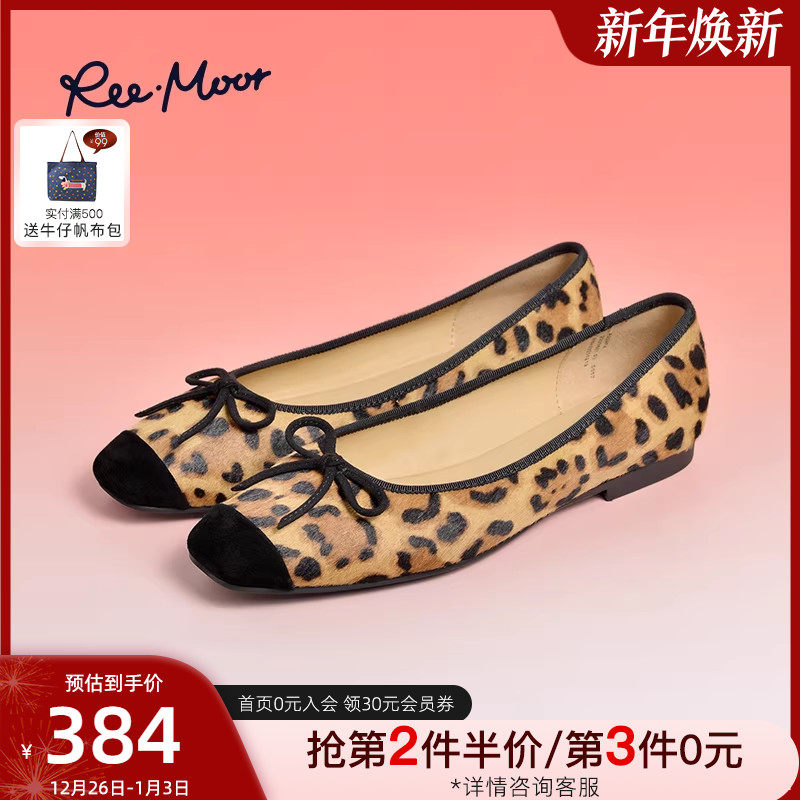 REEMOOR睿慕2025秋季新款时尚豹纹浅口单鞋舒适软底平底鞋方头女