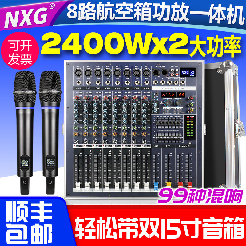 NXG调音台带功放8路大功率演出婚庆99种混响均衡效果一体机航空箱