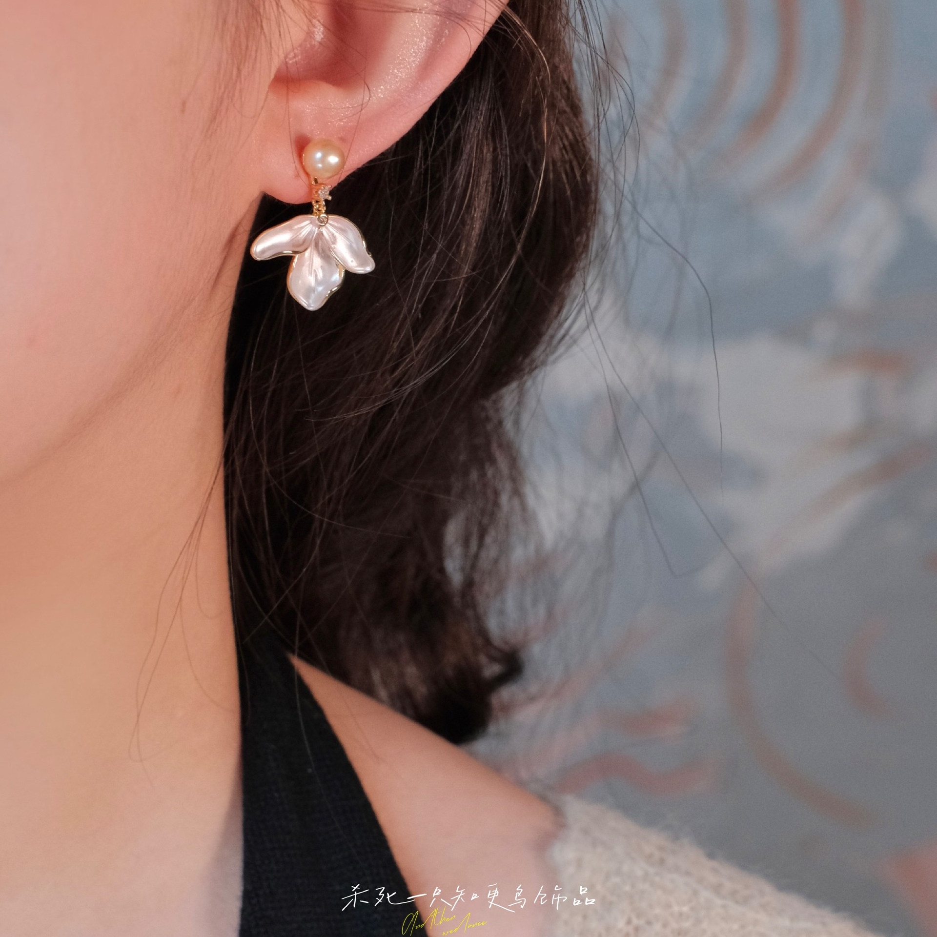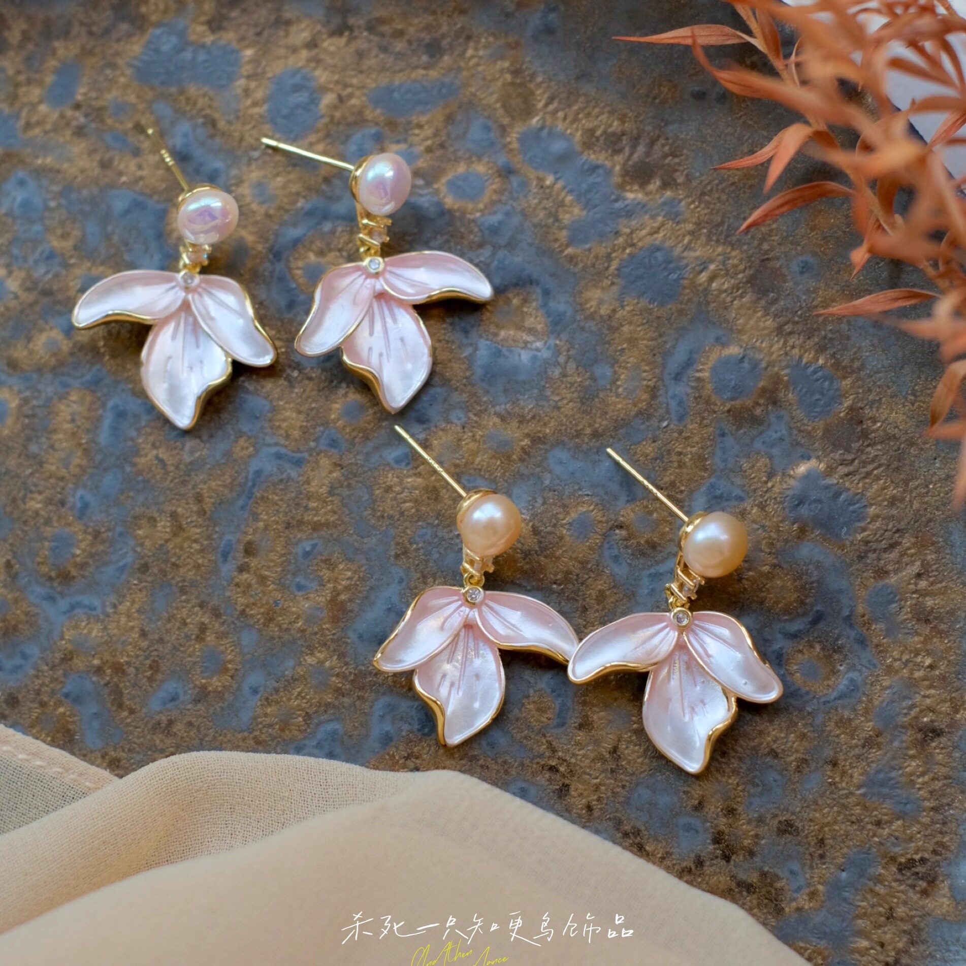 《粉樱信使》温柔淡粉色仙气新中式淡水珍珠珐琅花瓣耳环耳饰耳夹