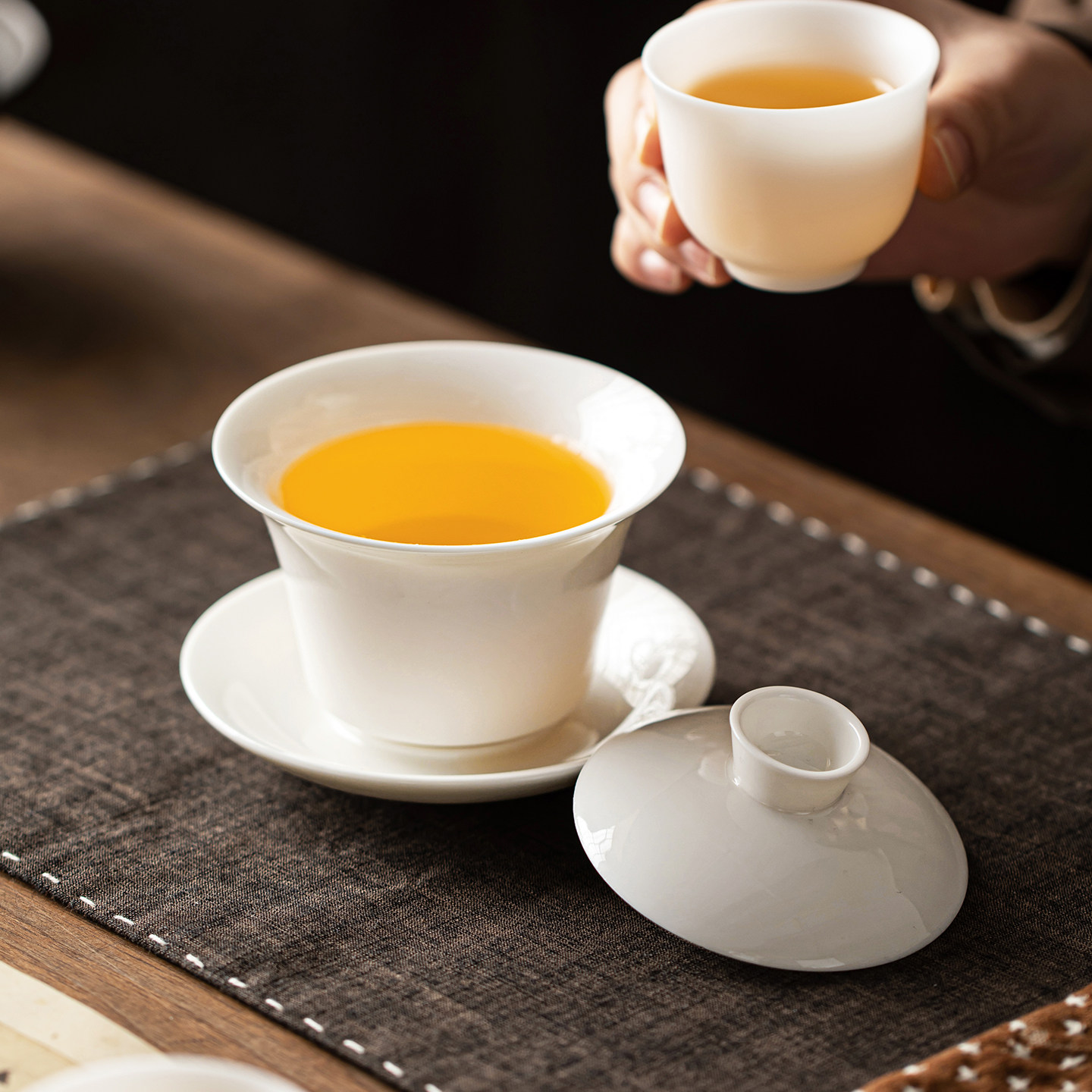 唐丰德化羊脂玉白瓷三才盖碗茶杯家用功夫泡茶碗轻奢高档礼盒装
