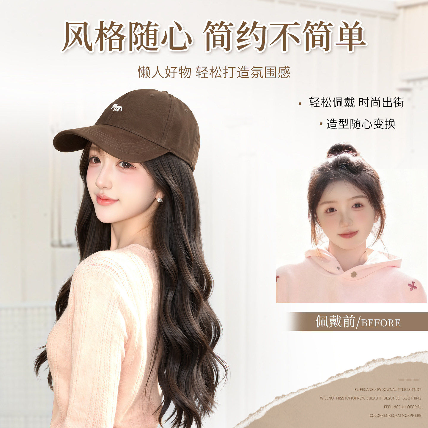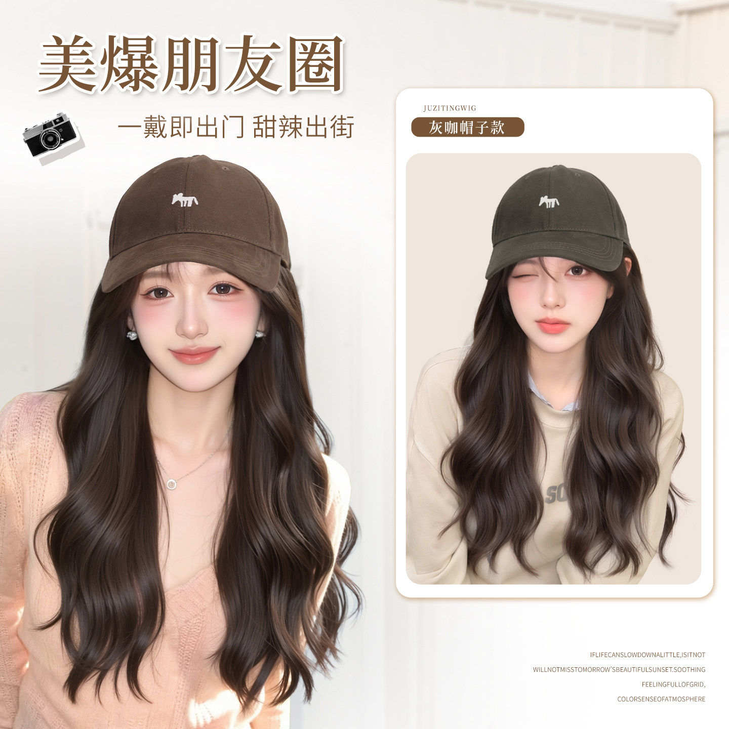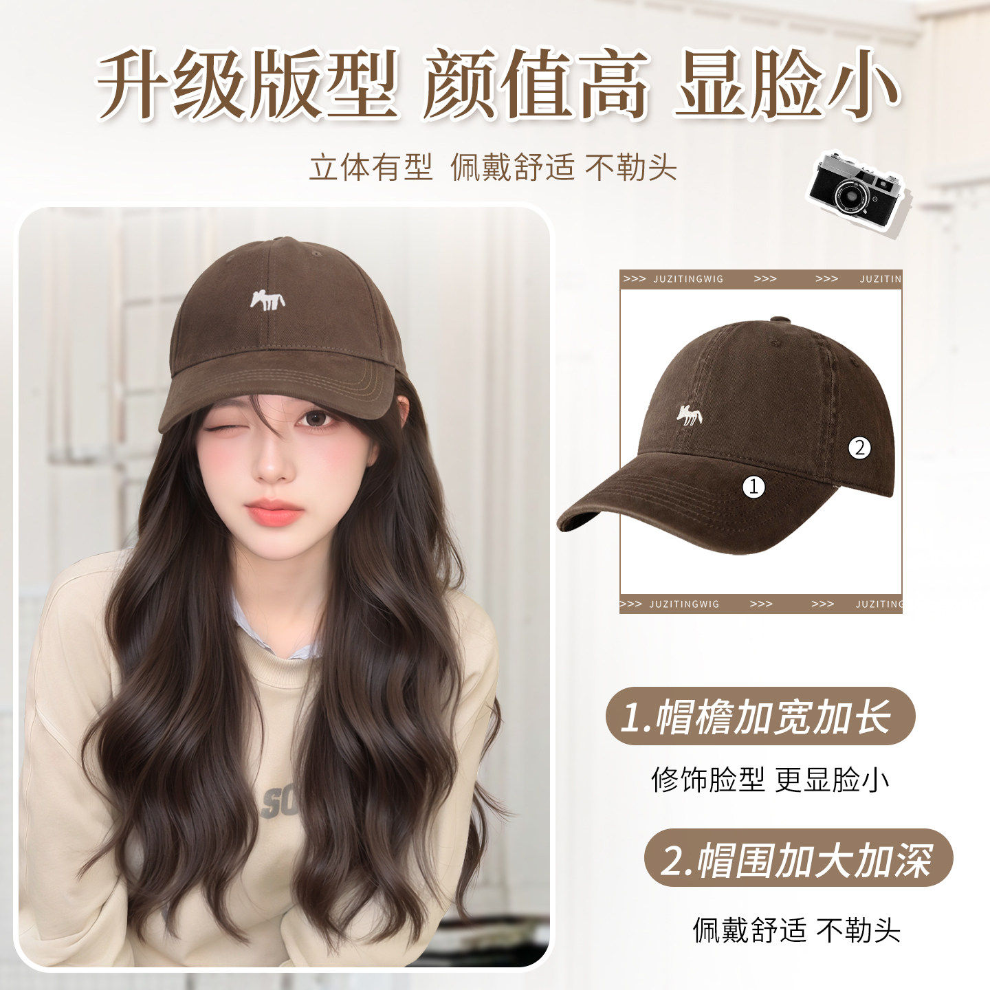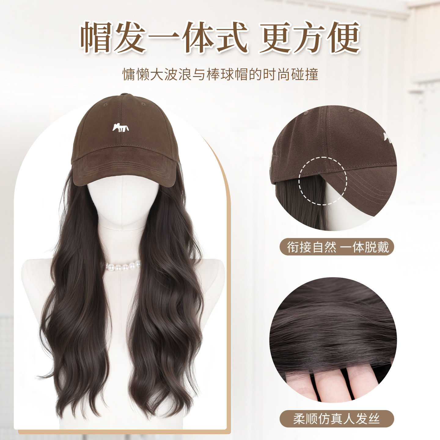 假发帽子一体全头套小狐狸棒球帽卷发大波浪蓬松自然显发量假发套