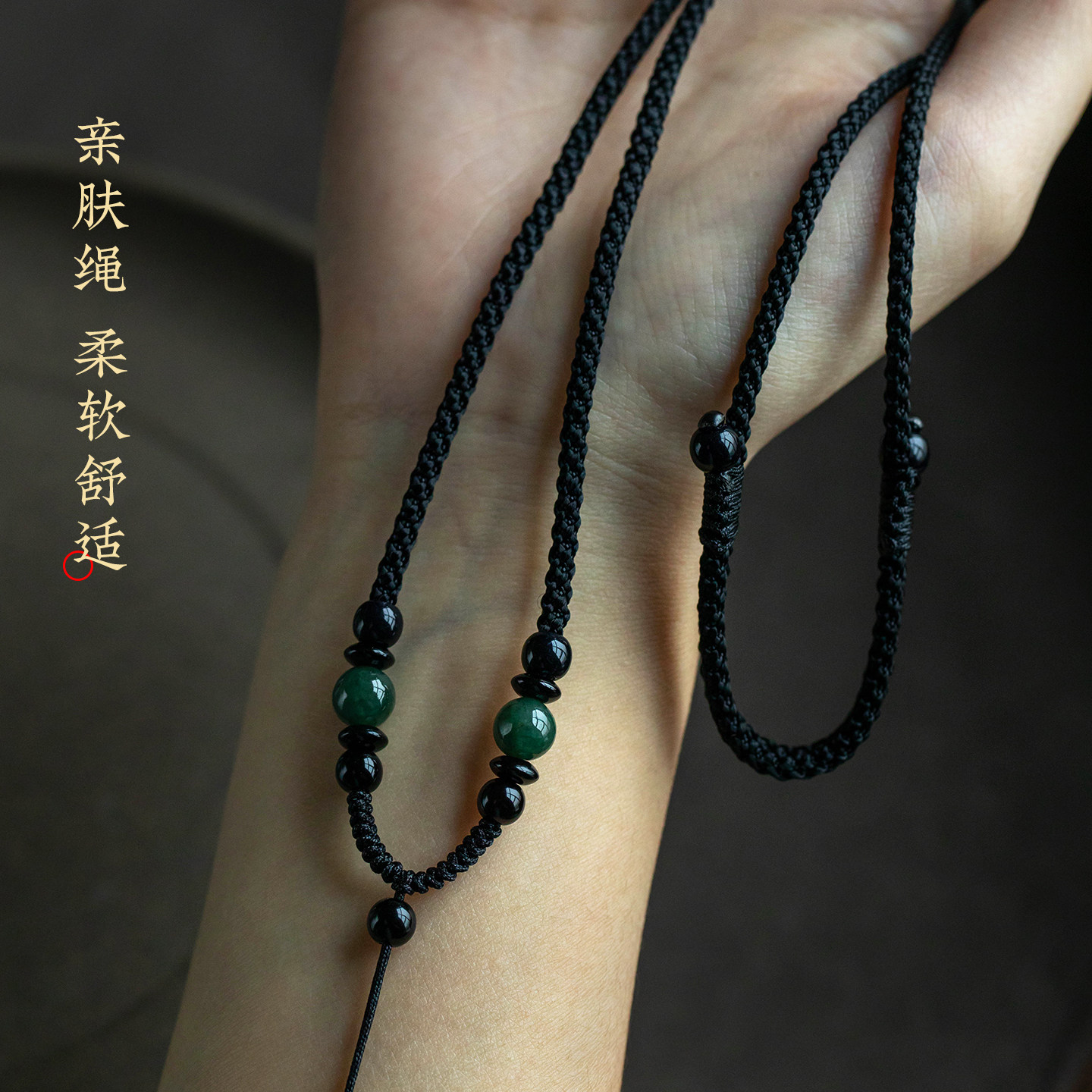 天然翡翠配饰手工编绳玉石貔貅项链挂绳男女款黄金蜜蜡吊坠挂件绳