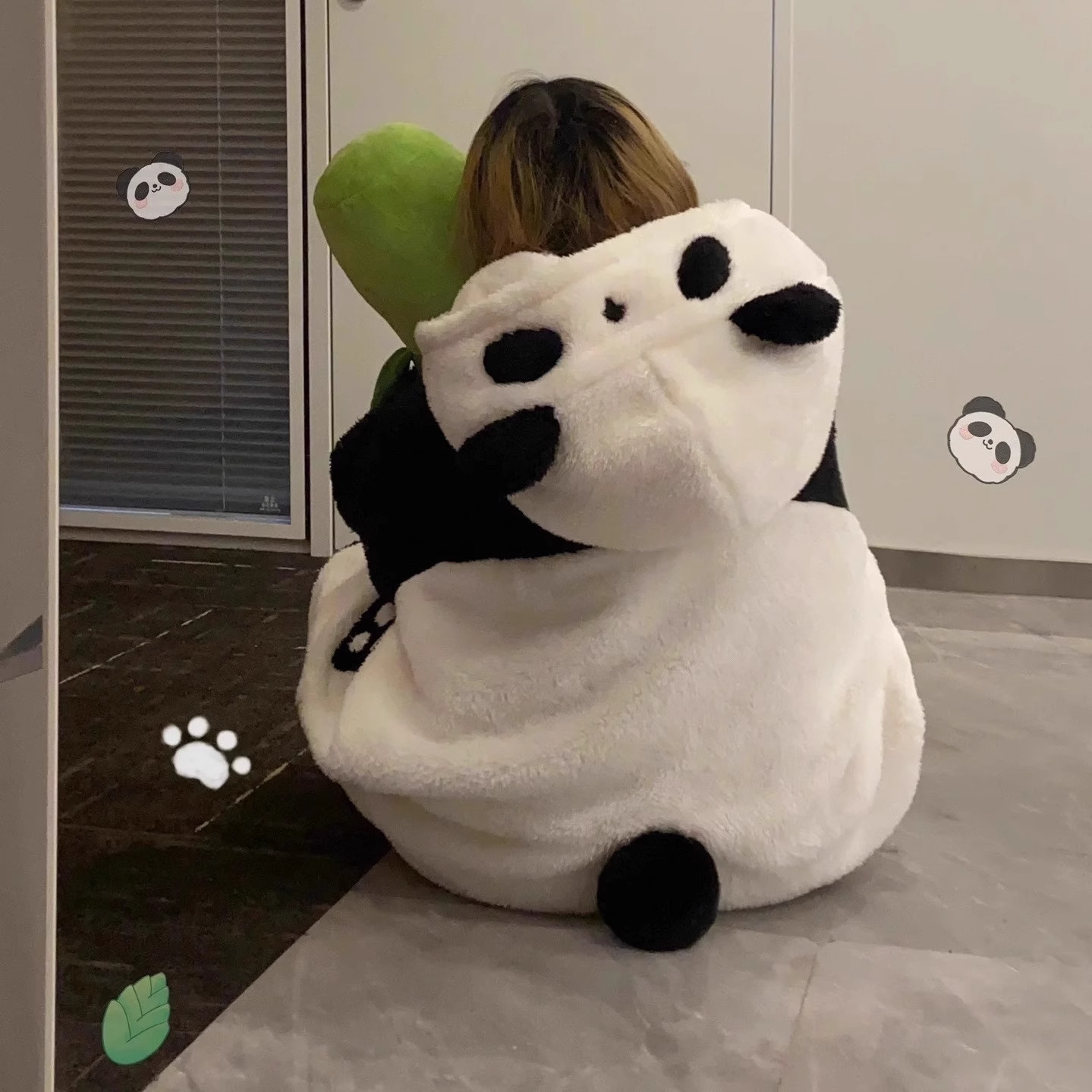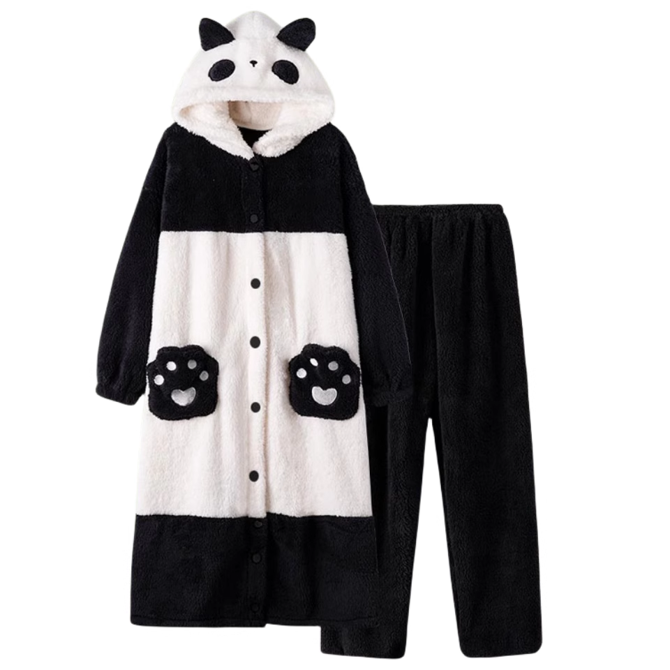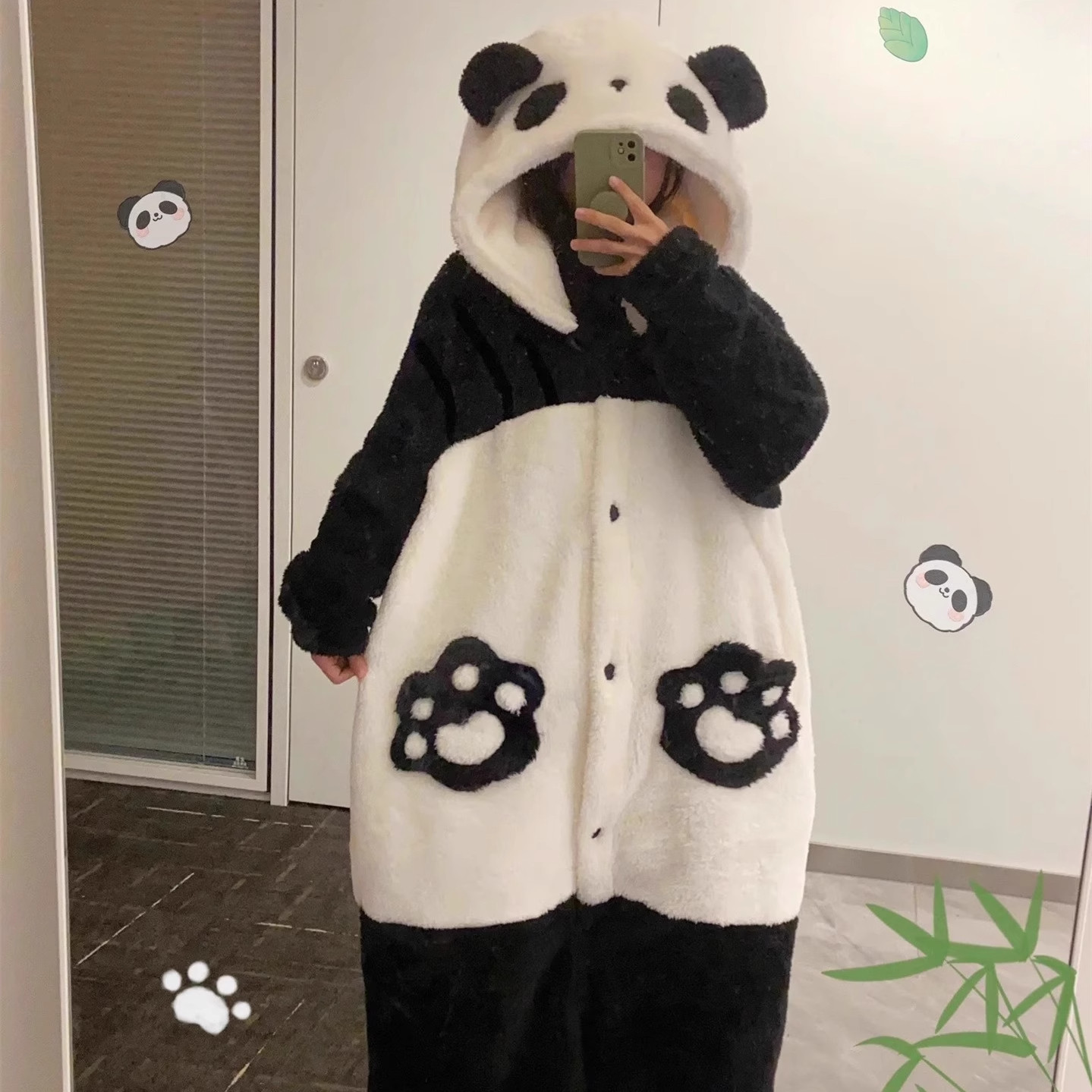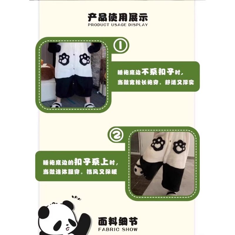 小熊猫睡袍睡衣男女可外穿加厚珊瑚绒可爱长裤家居服套装加绒连体