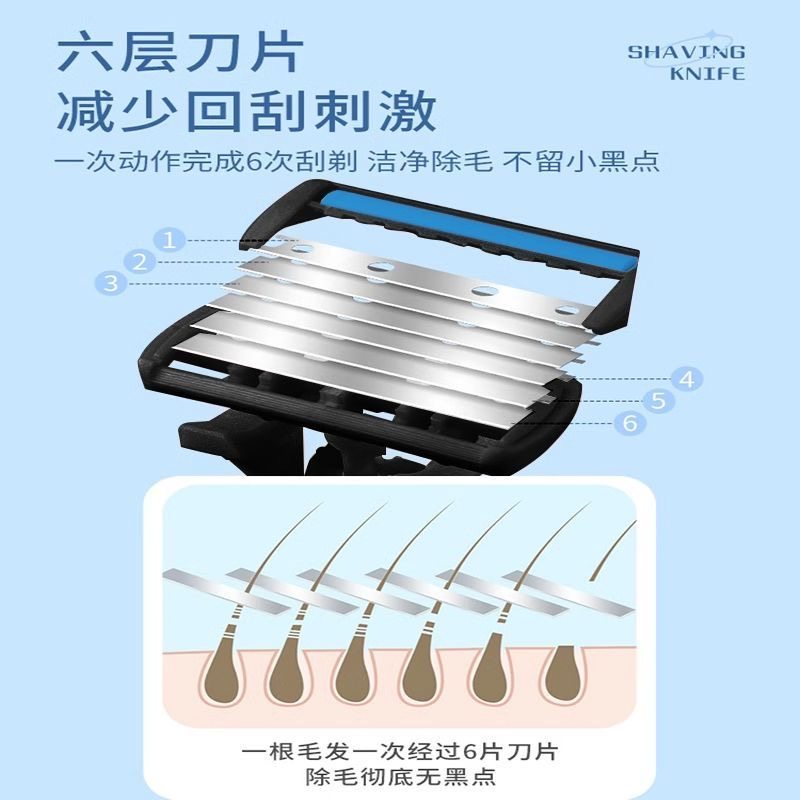 【活动中-利亚】6层手动剃须刀刮胡刀男士刮头六层刮毛刀进口刀片