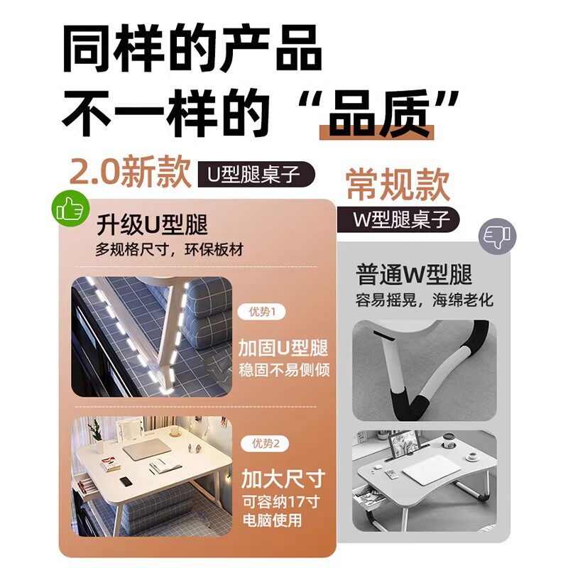 床上小桌子可折叠书桌学生床头宿舍床上桌笔记本支架电脑桌办公学习桌卧室宿舍可移动炕桌加大上铺飘窗小桌板