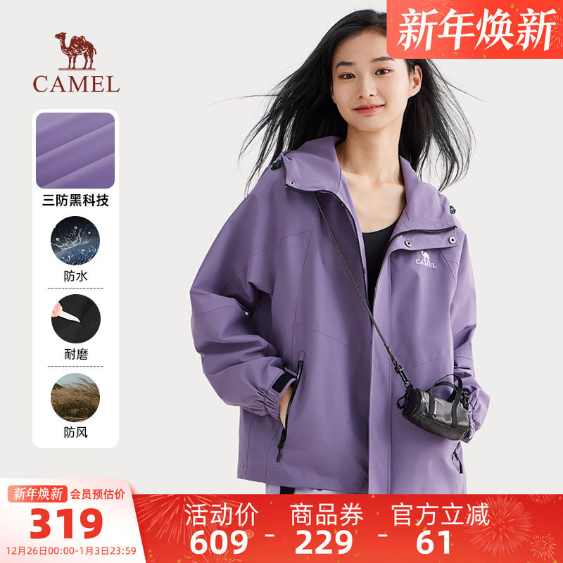 骆驼女装单层冲锋衣2025秋冬新款户外防风防水连帽立领男女款外套