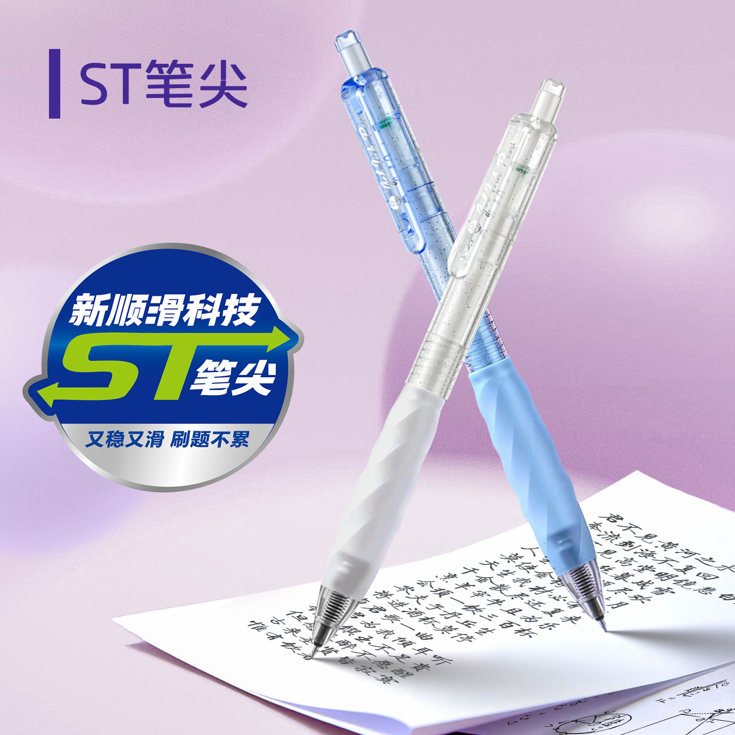 ST刷题笔高颜值按动中性笔圆珠笔黑色水笔小学生专用考试0.5速干碳素笔水性黑笔按压式做笔记签字笔非按斤卖