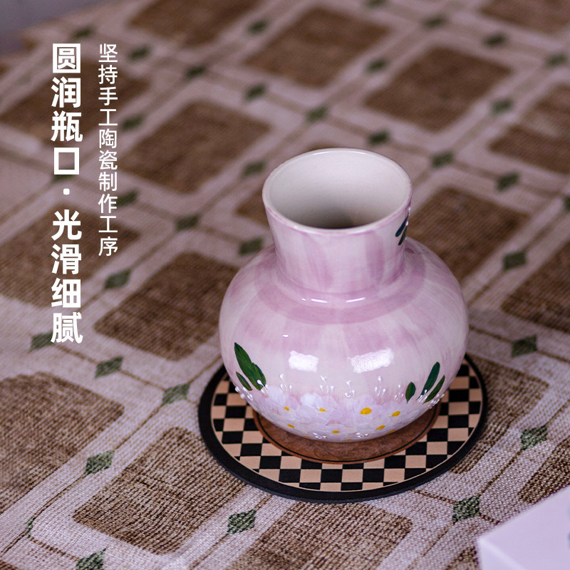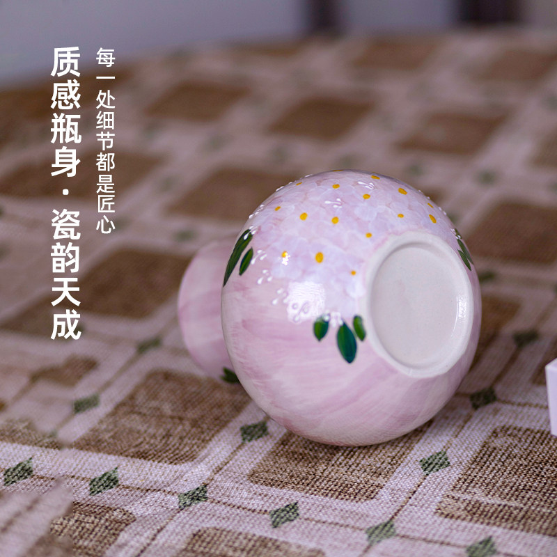 景德镇陶瓷花瓶摆件客厅插花轻奢高级感水培鲜花网红创意彩绘陶罐