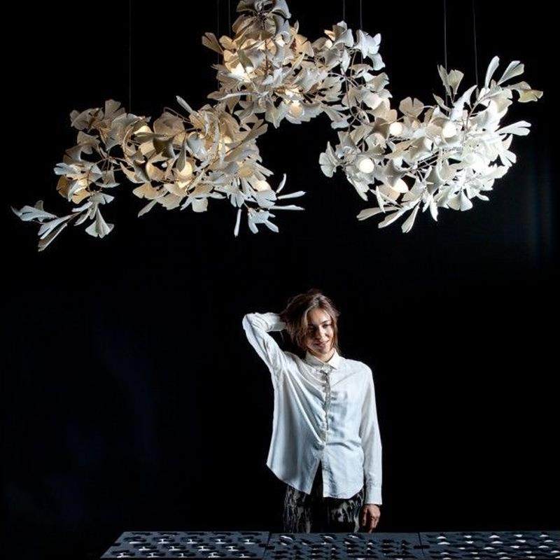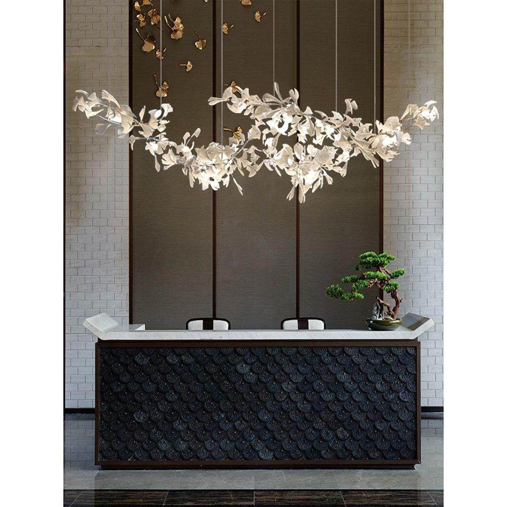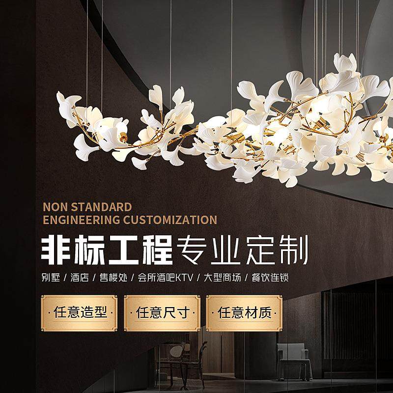 陶瓷花银杏树叶长吊灯高档工程灯设计师餐厅楼梯间售楼处艺术灯具