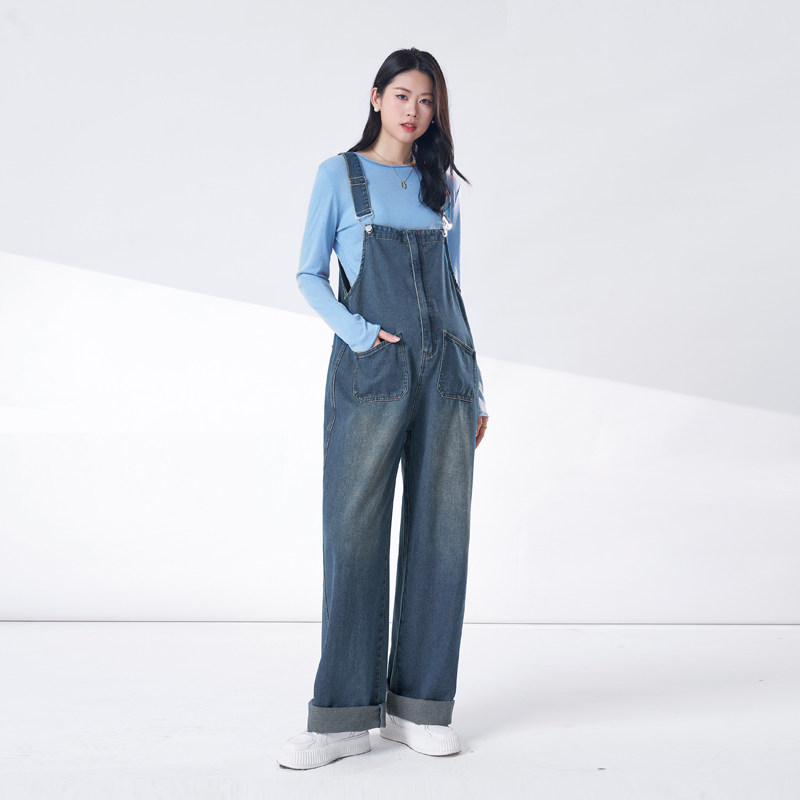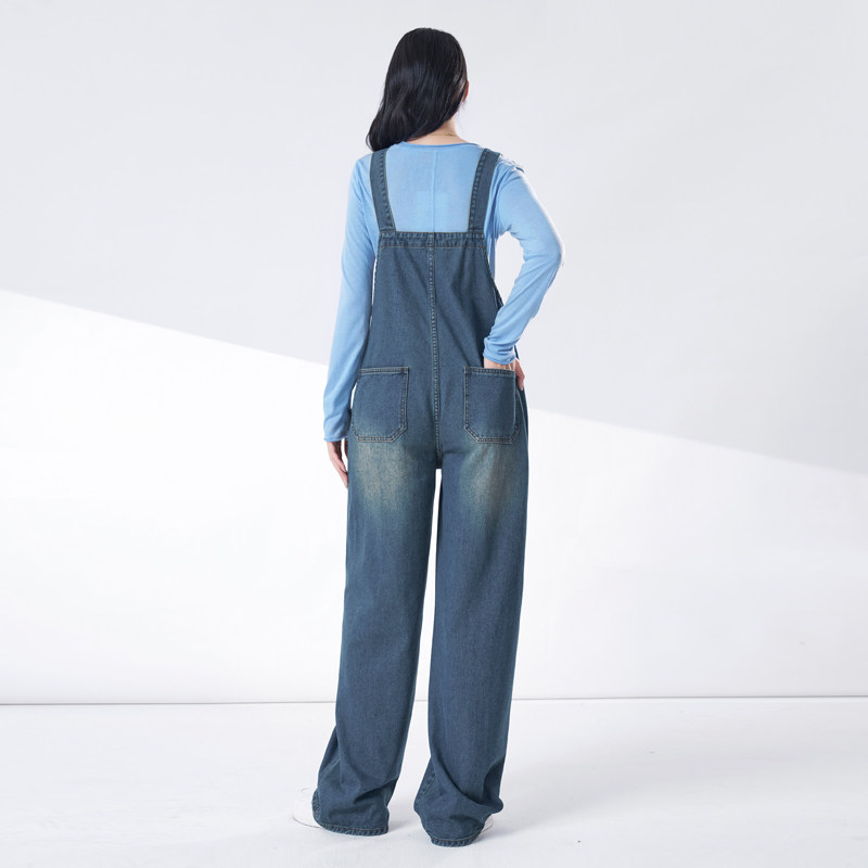 孕妇牛仔背带裤秋冬外穿2025新款不勒肚子休闲直筒长裤孕期阔腿裤