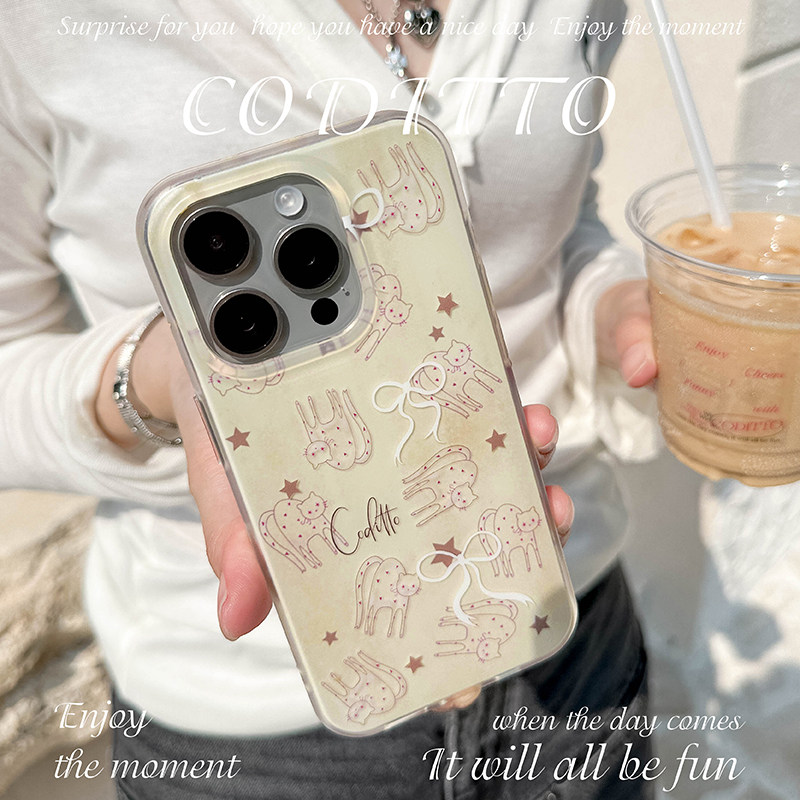 coditto咖啡奶猫双层印花磨砂工艺适用iPhone17promax手机壳苹果16promax新款15pro全包14promax可爱13pro12
