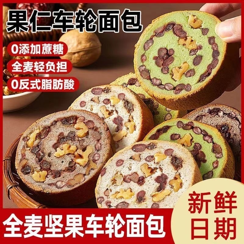车轮坚果面包果仁欧包全麦学生早餐饱腹零食健身代餐好吃健康粗粮