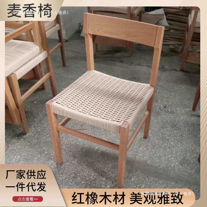 麦香椅 实木椅子 北欧真藤家具咖啡店餐厅民宿藤编椅子 原木餐椅
