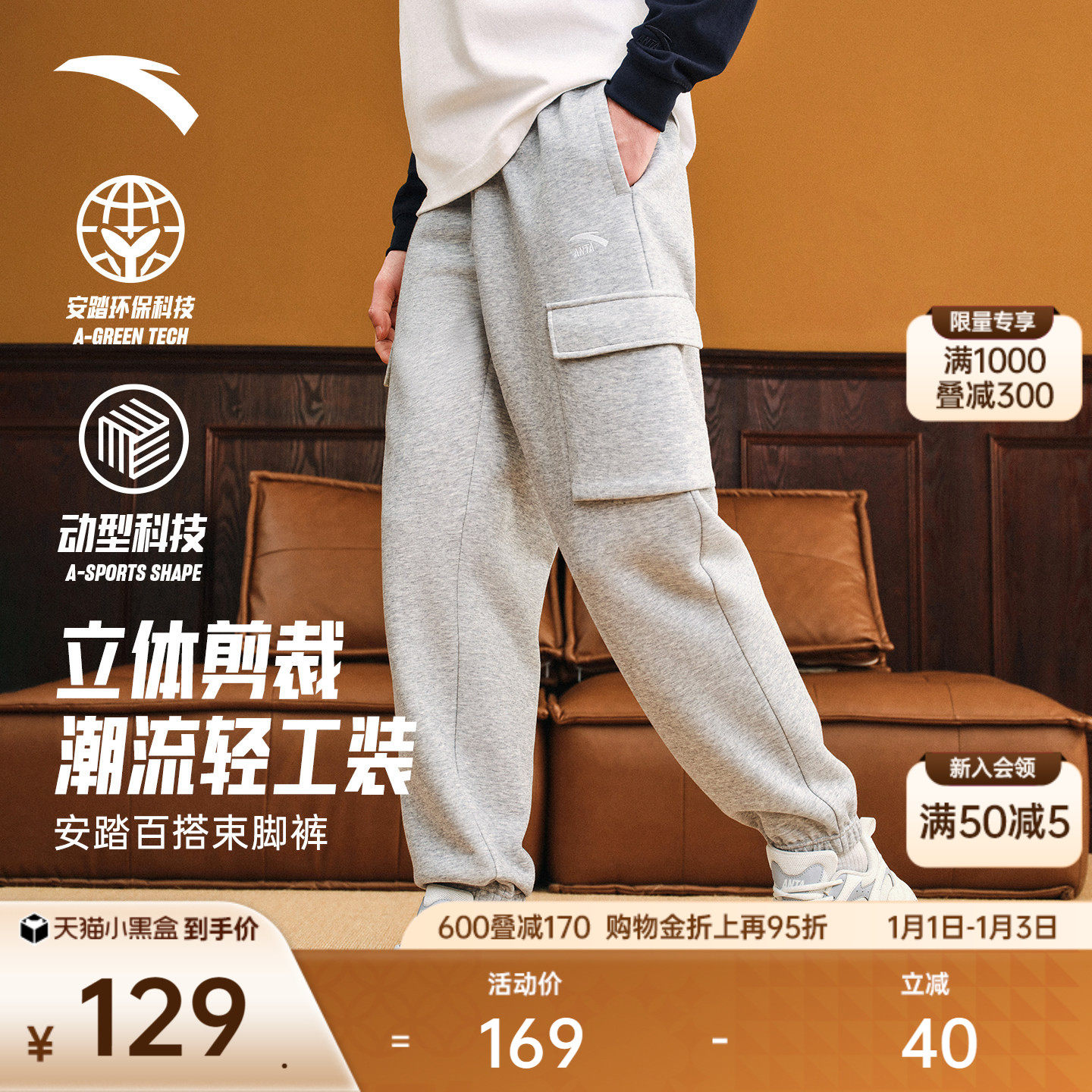 安踏美式轻工装运动长裤男士2025新款潮流束脚裤透气休闲裤卫裤子