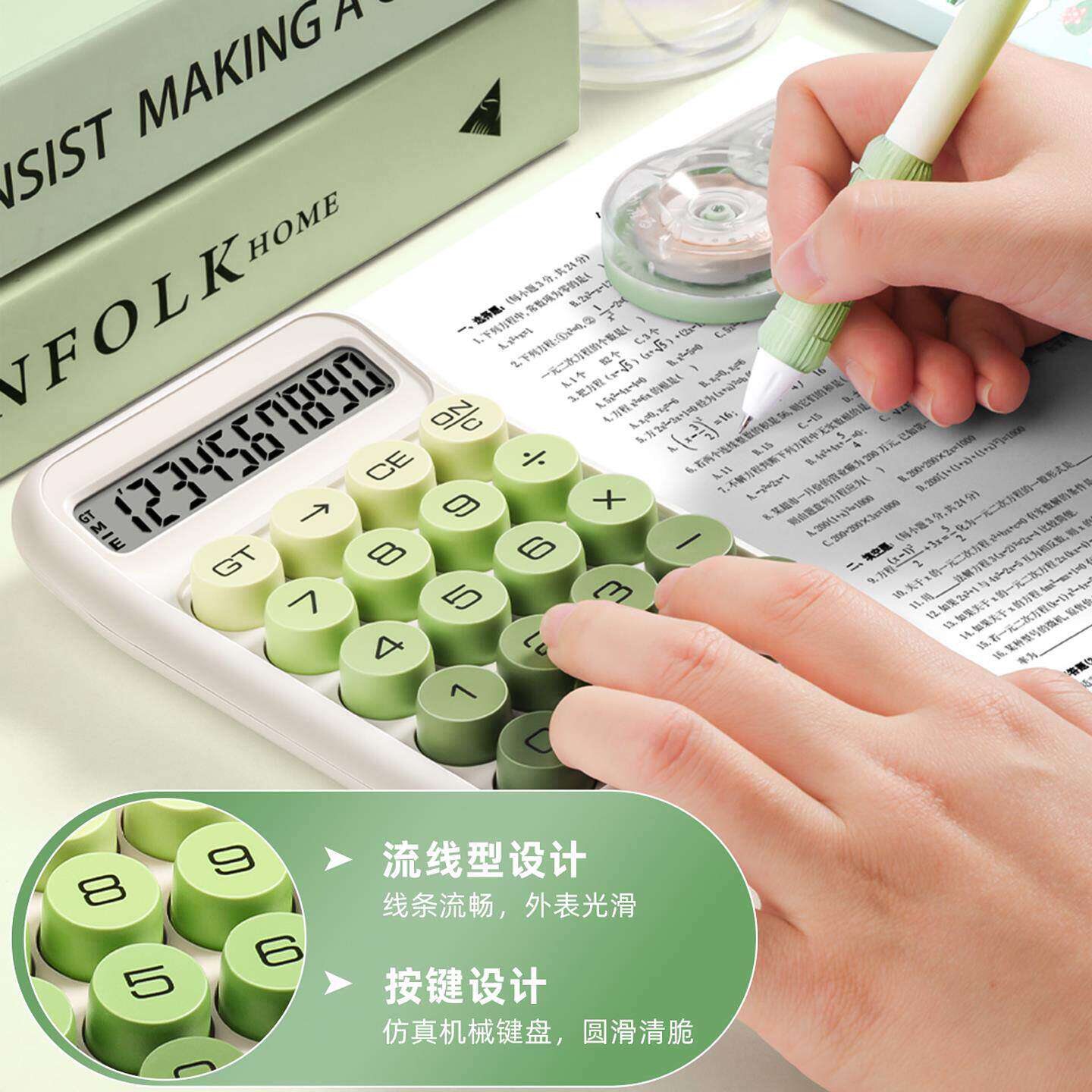 高颜值计算器办公室用渐层女神款大学生考试多功能柔性键盘计算机器公务员可携式机械按键财务会计商用网红款