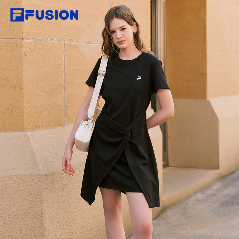FILA FUSION斐乐潮牌女子针织连衣裙2026春季新款不规则下摆T恤裙