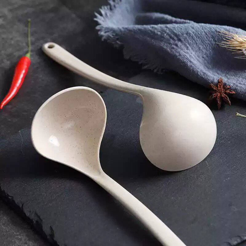 韩式长柄汤勺小麦秸秆家用盛汤稀饭粥勺厨房耐高温防烫大号拌饭勺