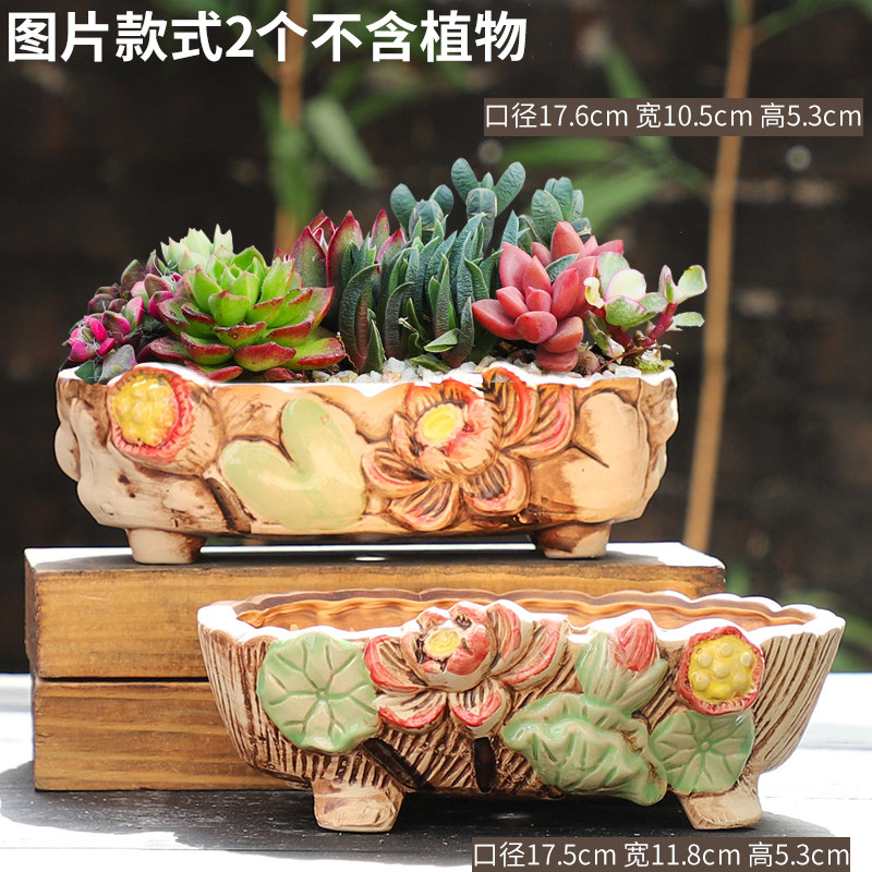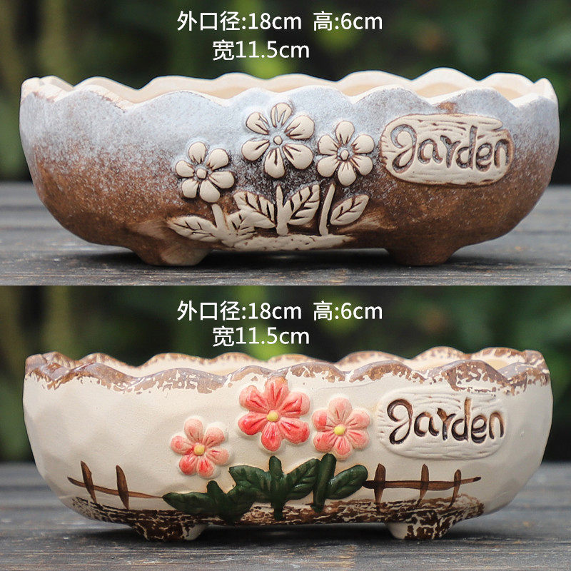 大号多肉花盆陶瓷创意简约粗陶大花盆大口径多肉植物拼盆