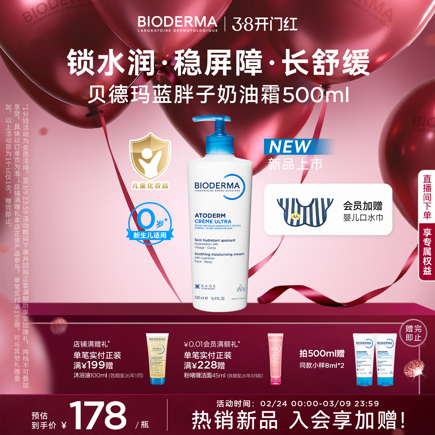 全新贝德玛蓝胖子奶油霜身体乳家庭版儿童宝宝面霜秋冬小金盾温和