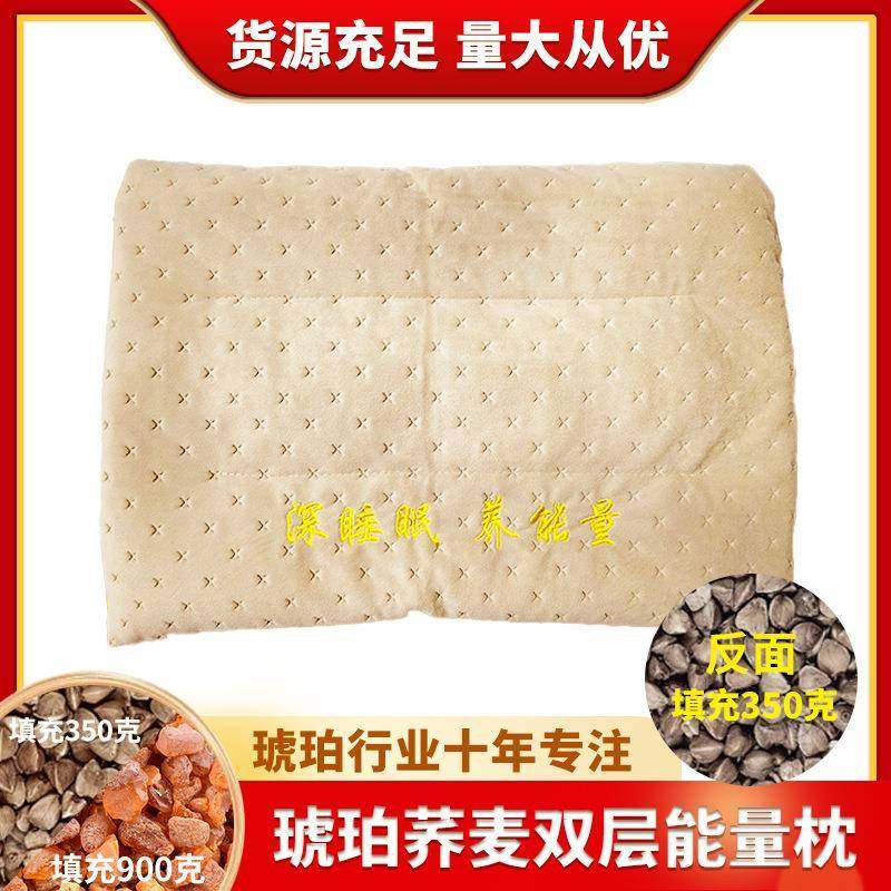 天然波罗的海带皮琥珀蜜蜡原石荞麦壳双层能量枕理疗专用护颈助眠