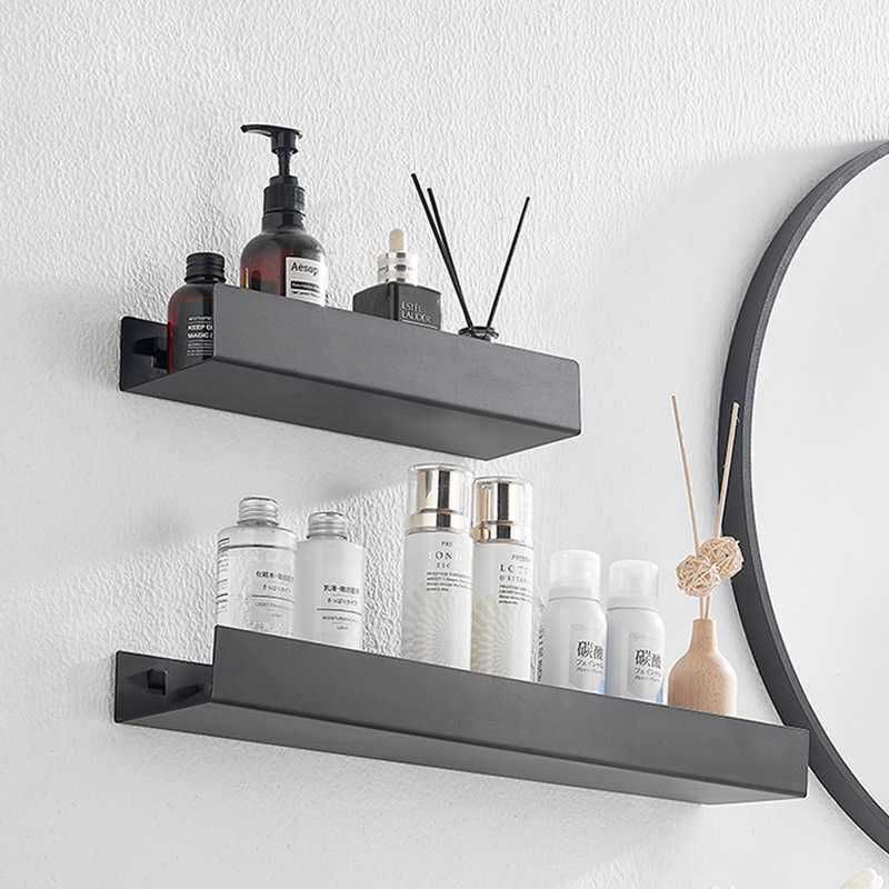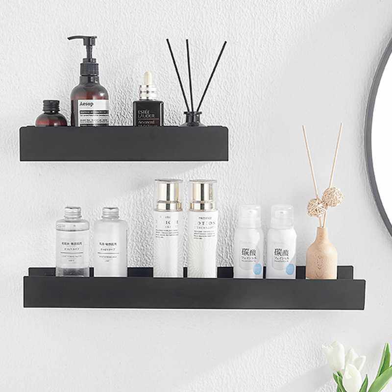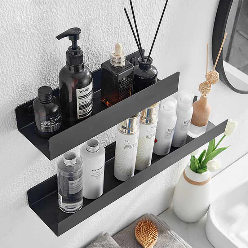 浴室卫生间置物架免打孔淋浴房厕所一字隔板收纳架黑色简约置物架