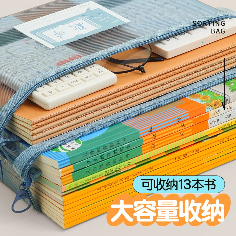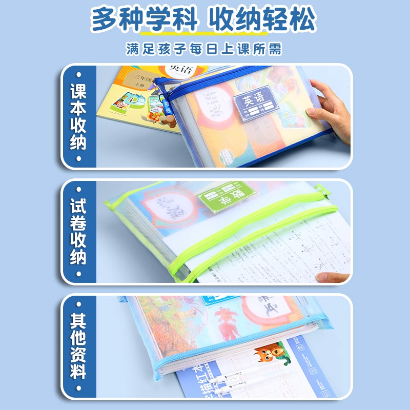 双层学科科目分类文件袋透明拉链式收纳书包手提学生补习拎书补课考试专用初中小学生作业男女孩儿童试卷袋子