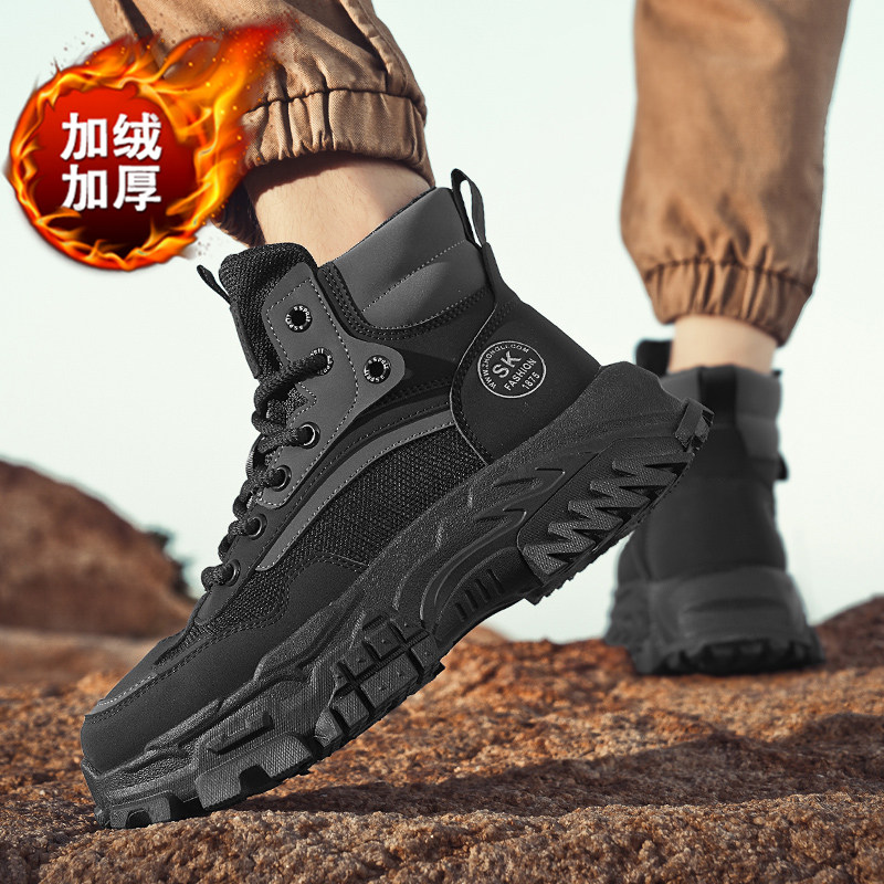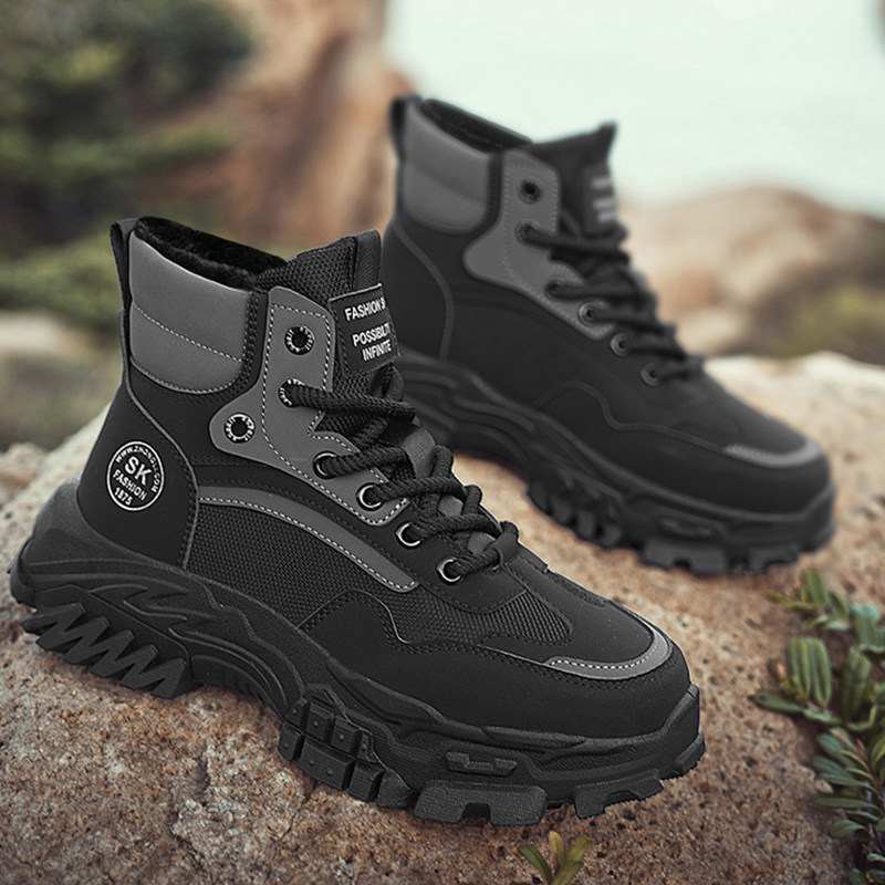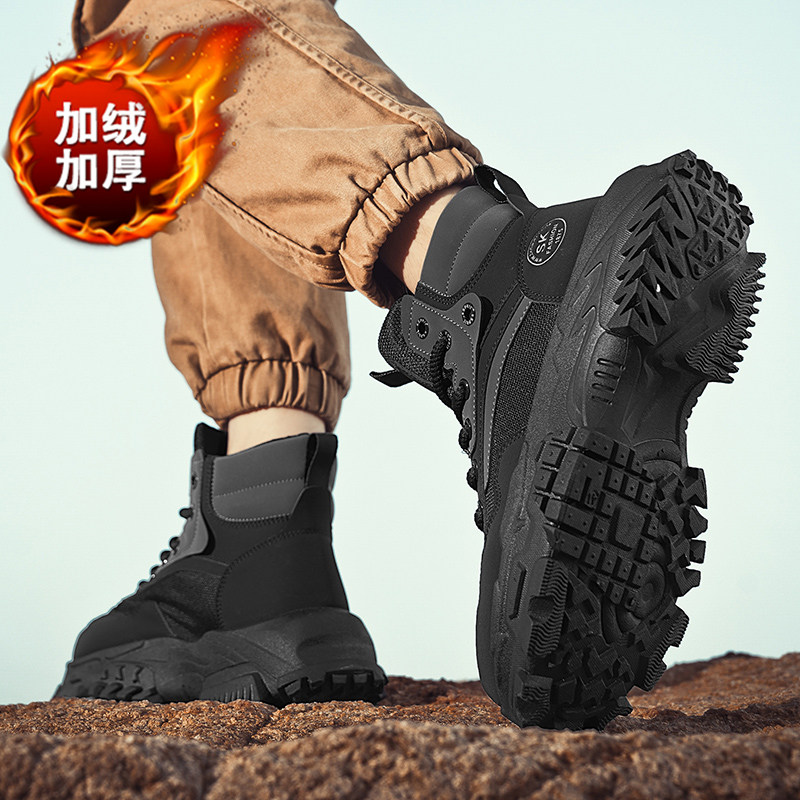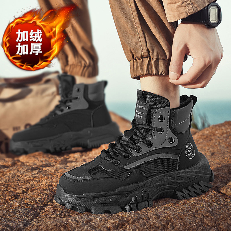 高帮男鞋冬季保暖加绒雪地棉鞋厚底工装马丁靴运动黑武士老爹潮鞋