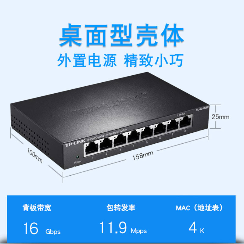 TPLINK8口5口4口16口24口多口千兆宿舍网管非POE交换机网络分流器监控路由器网线分线器家用企业级TL-SG1005D