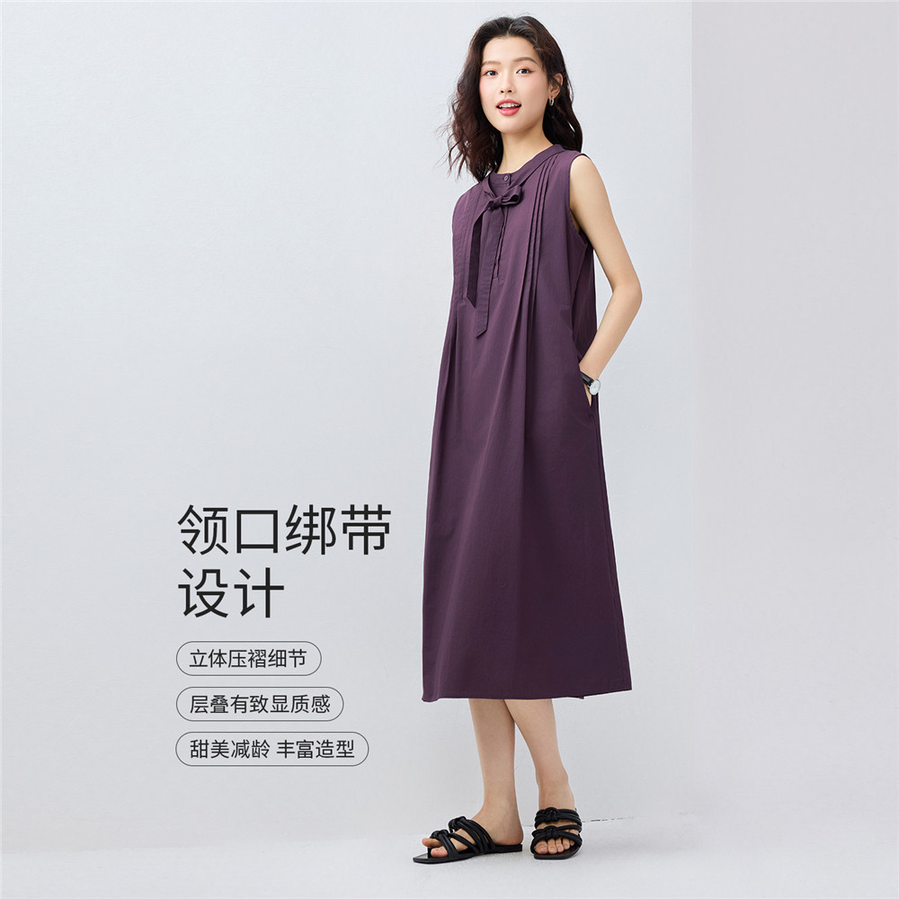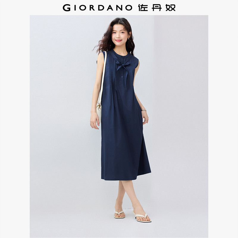 佐丹奴裙子女夏季新款纯棉府绸绑带背心裙圆领无袖连衣裙13465338