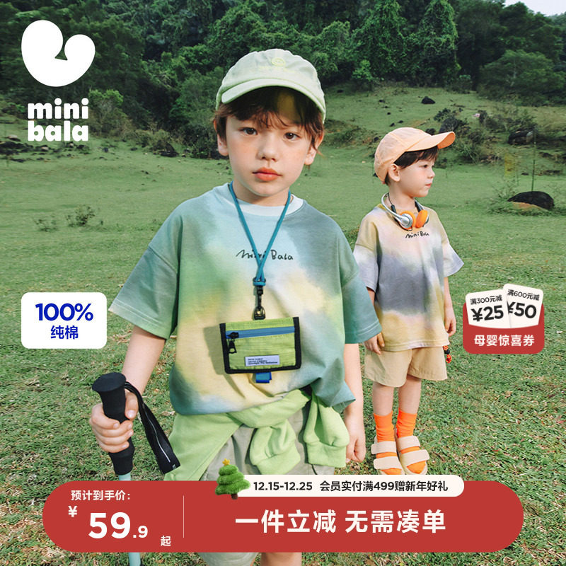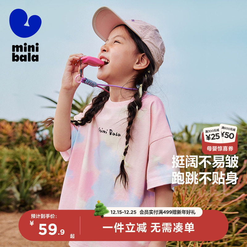 迷你巴拉巴拉男女童短袖透气夏T恤纯棉柔软儿童潮酷扎染宝宝上衣