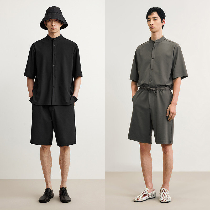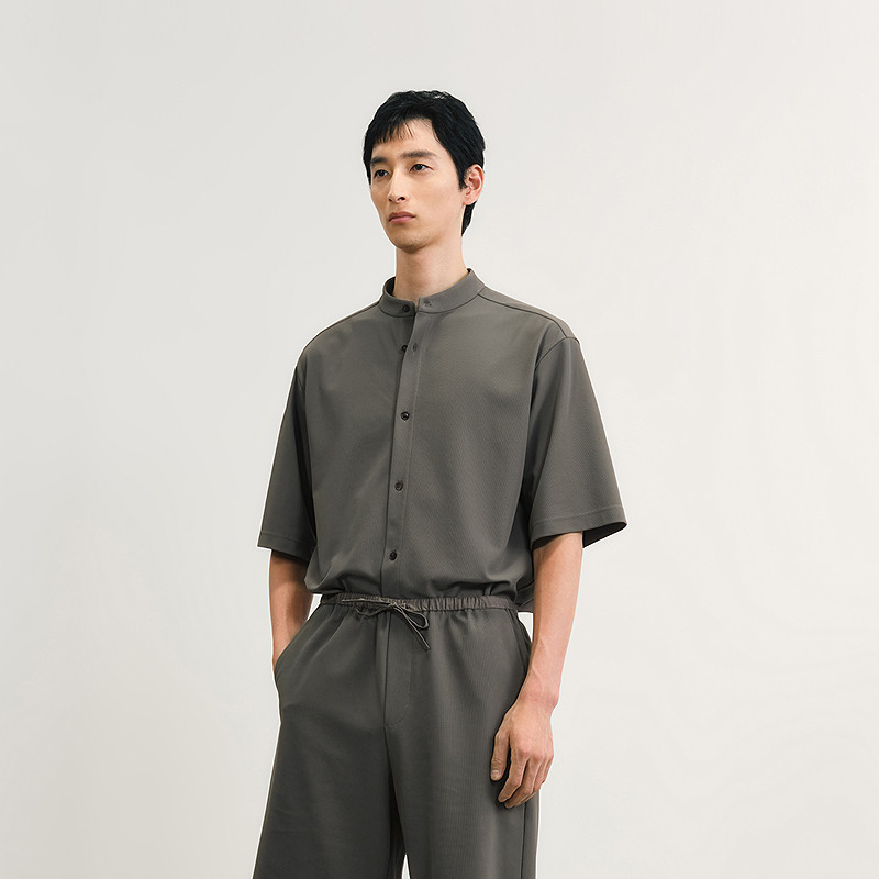 [防晒凉感]速写男装春夏新款男士短袖衬衫立领衬衣新中式通勤