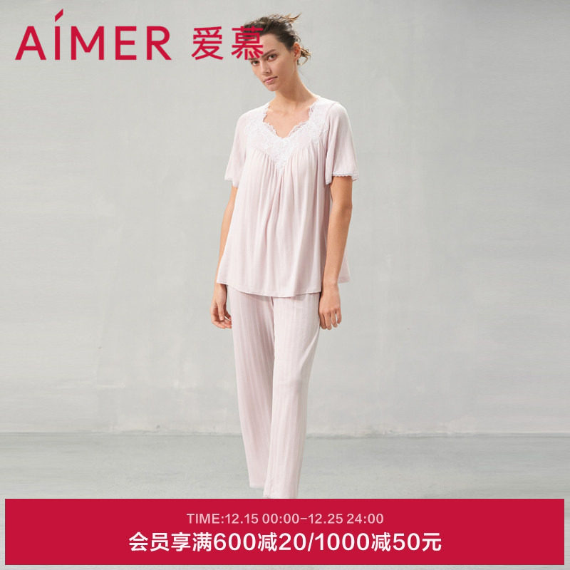 爱慕24SS睡美人睡衣女夏短袖带胸垫抗菌抗氧化分身可外穿家居套装