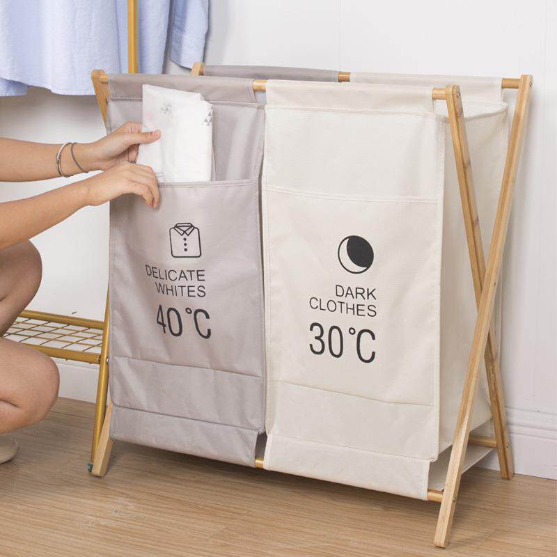 竹制X型架三色组合折叠脏衣篮外贸亚马逊款热卖 楠竹布艺家居收纳