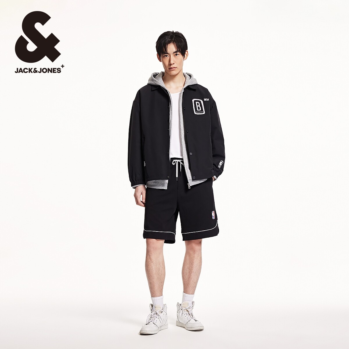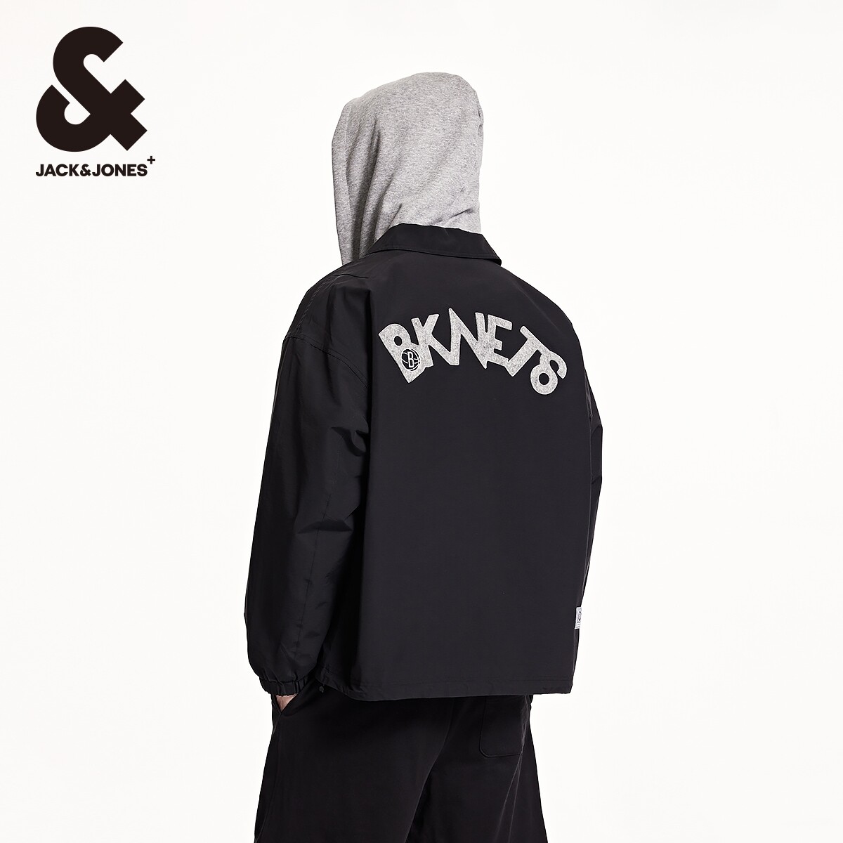 杰克琼斯秋季新款NBA联名时尚潮篮球字母刺绣翻领夹克外套男装