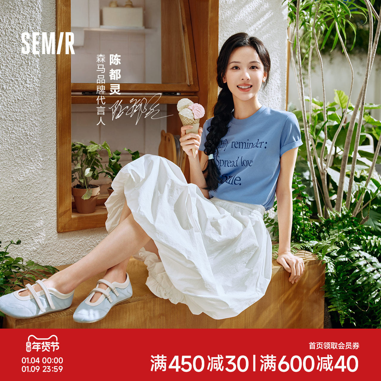 陈都灵丨[商场同款]森马半身裙女防晒凉感夏季2025新款花苞裙甜美