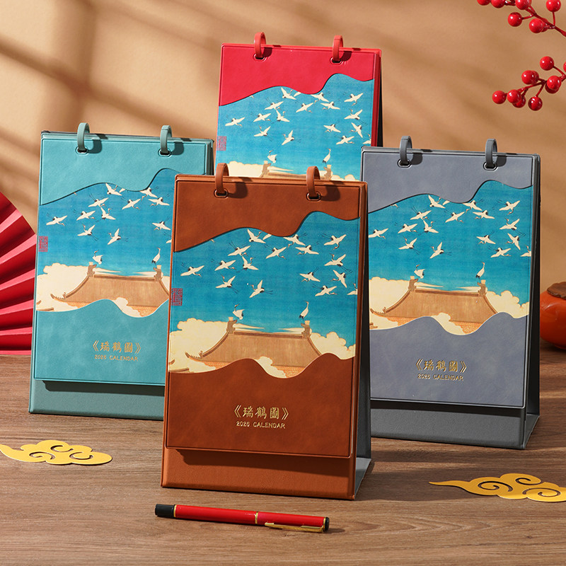 2026马年竖款皮质台历创意新颖商务记事日历桌面摆件公司礼品定制