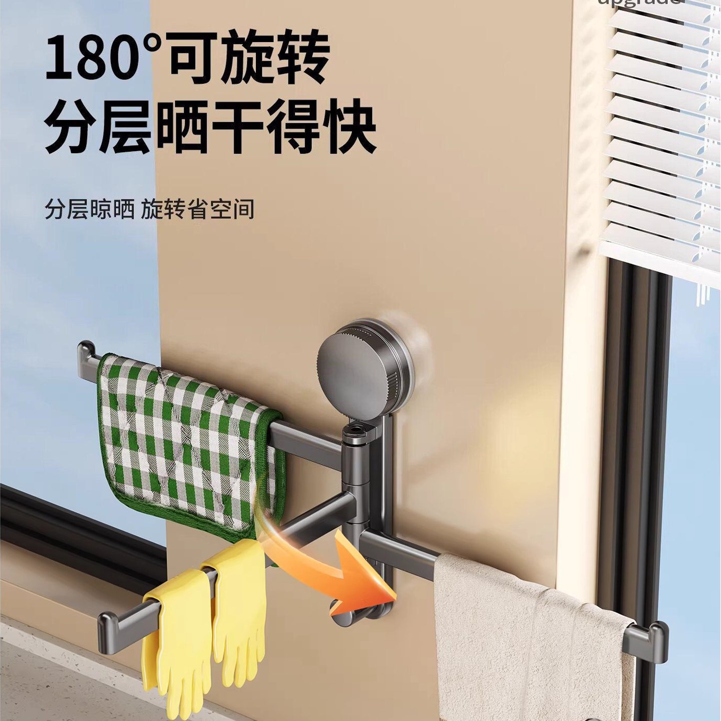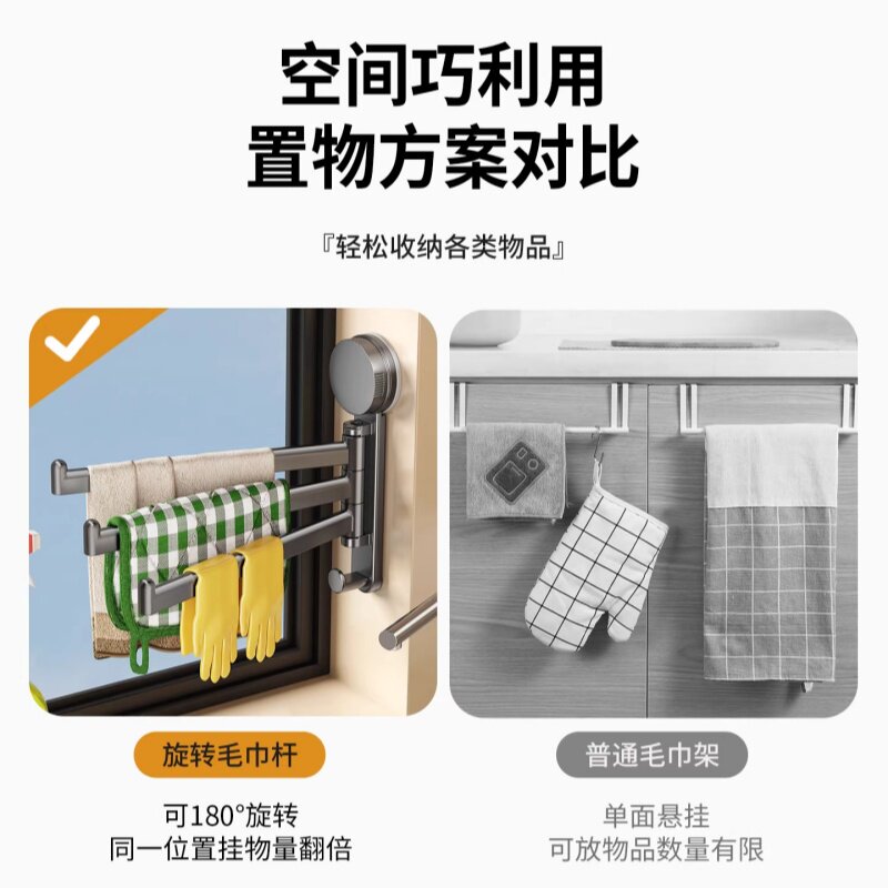 吸盘厨房抹布架置物架洗碗槽窗台多杆可旋转沥水架壁挂上墙毛巾架