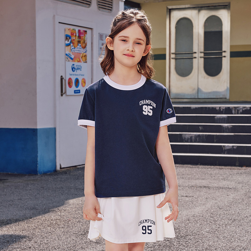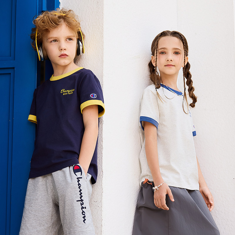 Champion冠军男女童夏季新款潮流经典简约拼色休闲运动短袖T恤