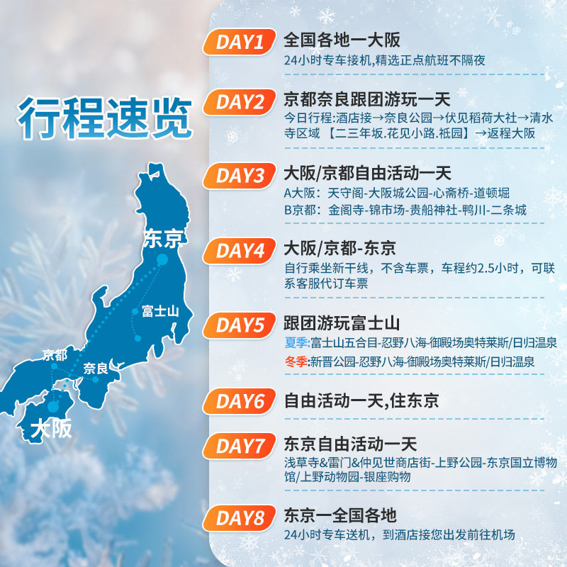 春节有位【含机票个签小团】日本东京富士大阪京都8天半自助