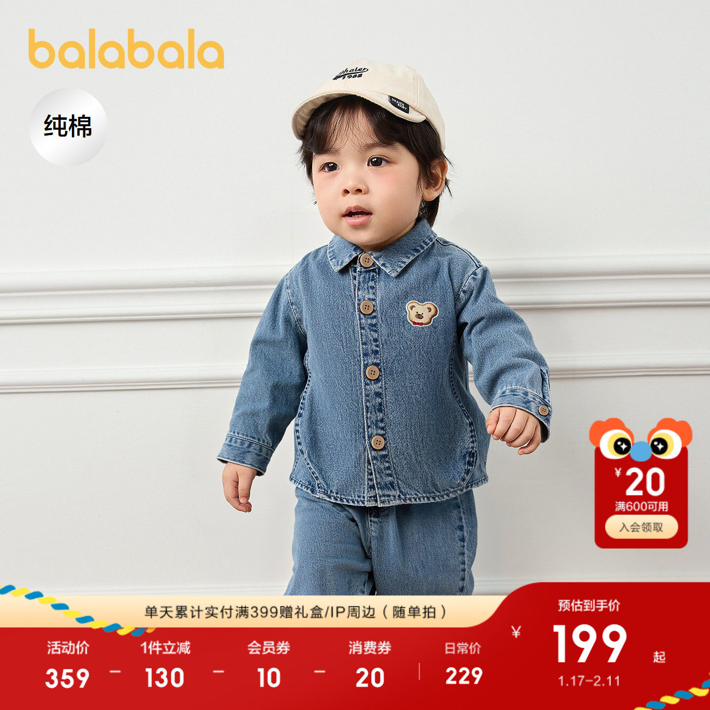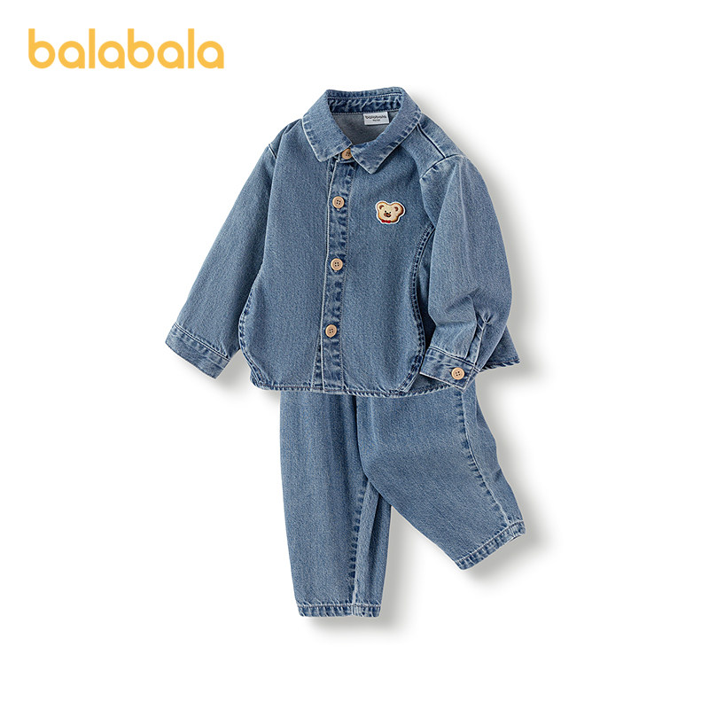 巴拉巴拉童装宝宝长袖套装牛仔两件套男童秋装2025新款萌时尚潮酷
