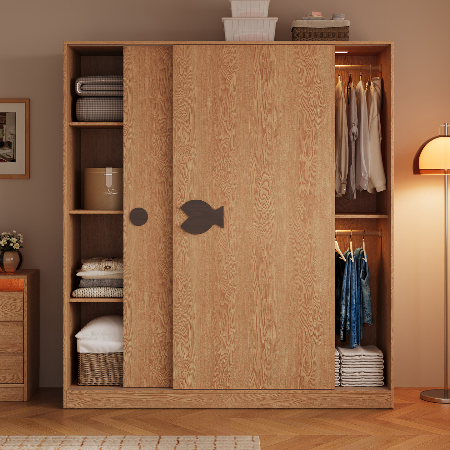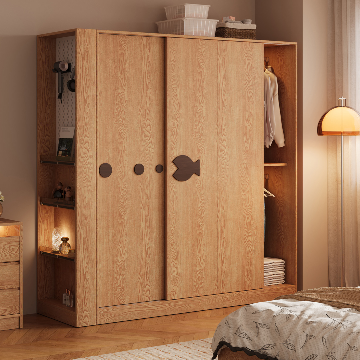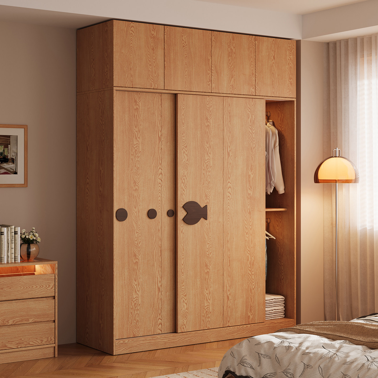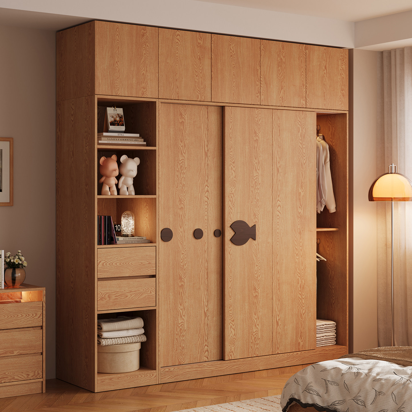 木兜家具泡泡鱼衣柜家用卧室实木大衣柜儿童推拉门款2026新款衣橱