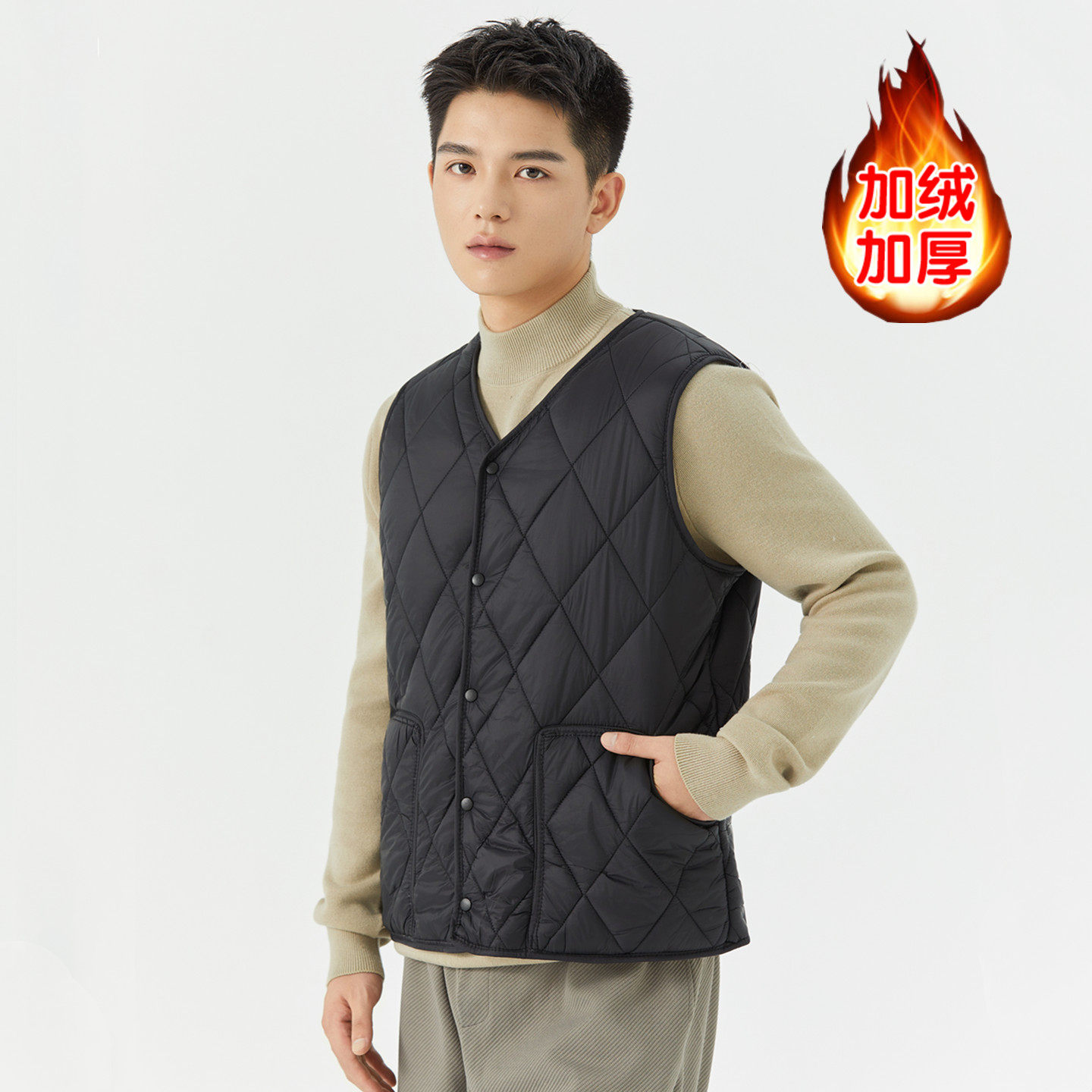 马甲男冬季新款加厚羊羔绒棉保暖贴身内胆背心男士马夹青少年校服