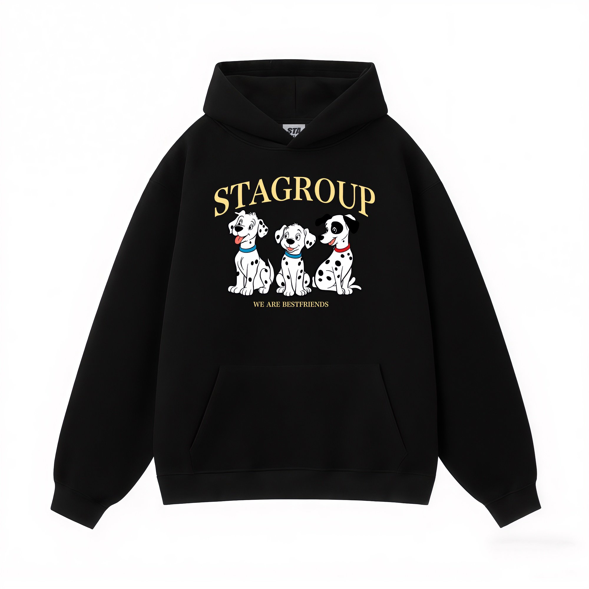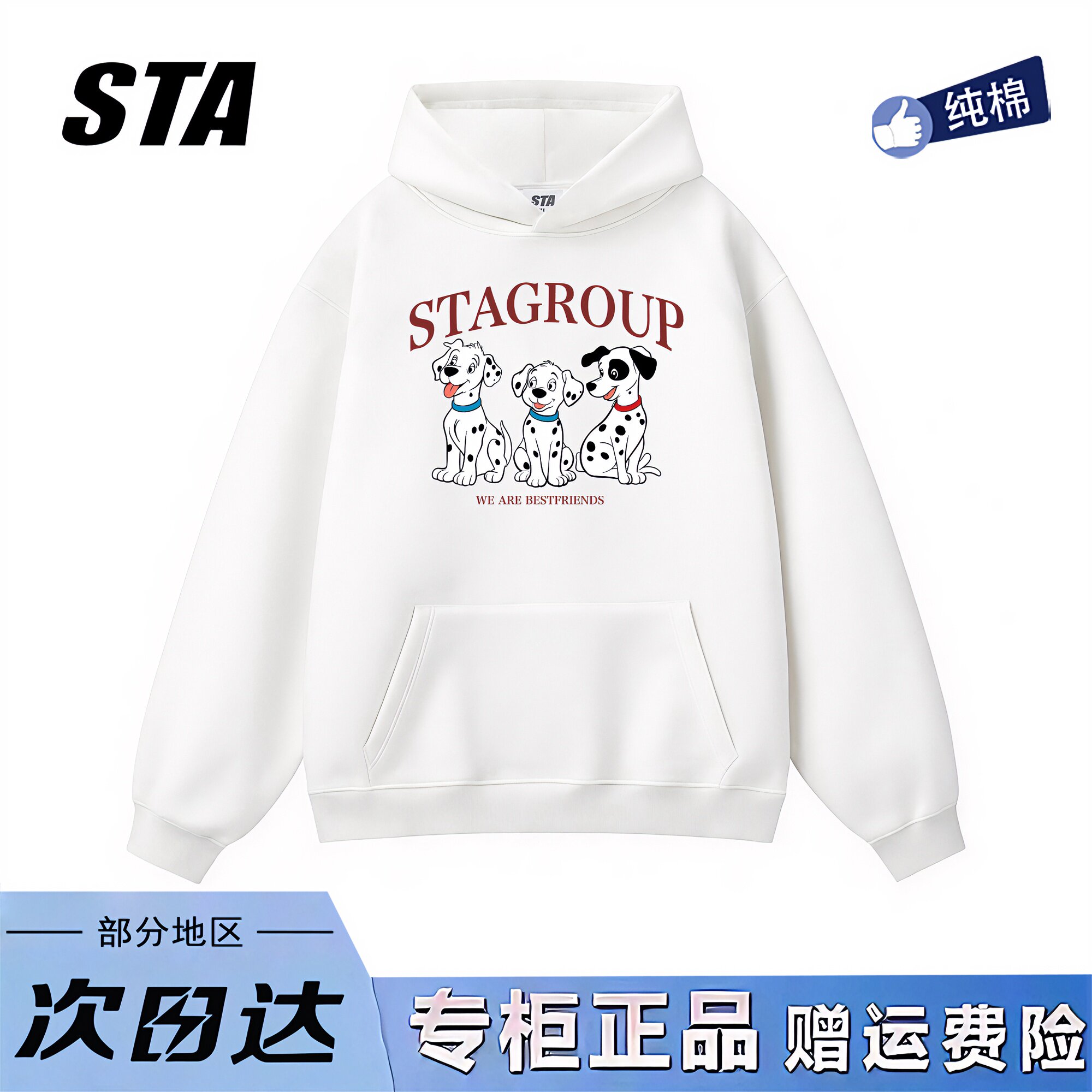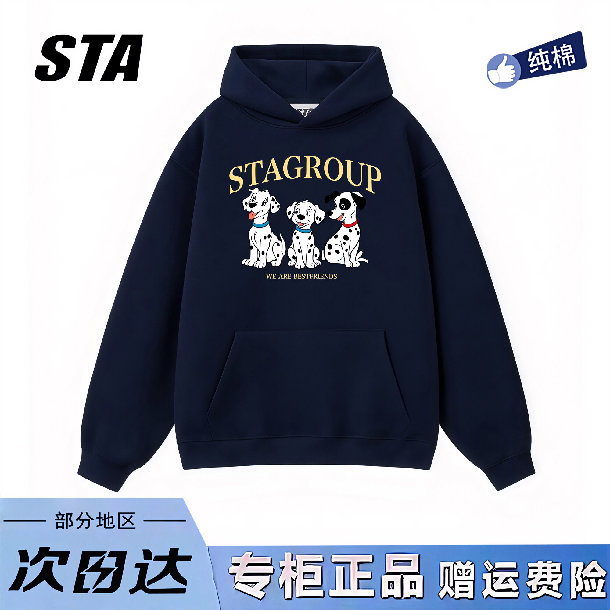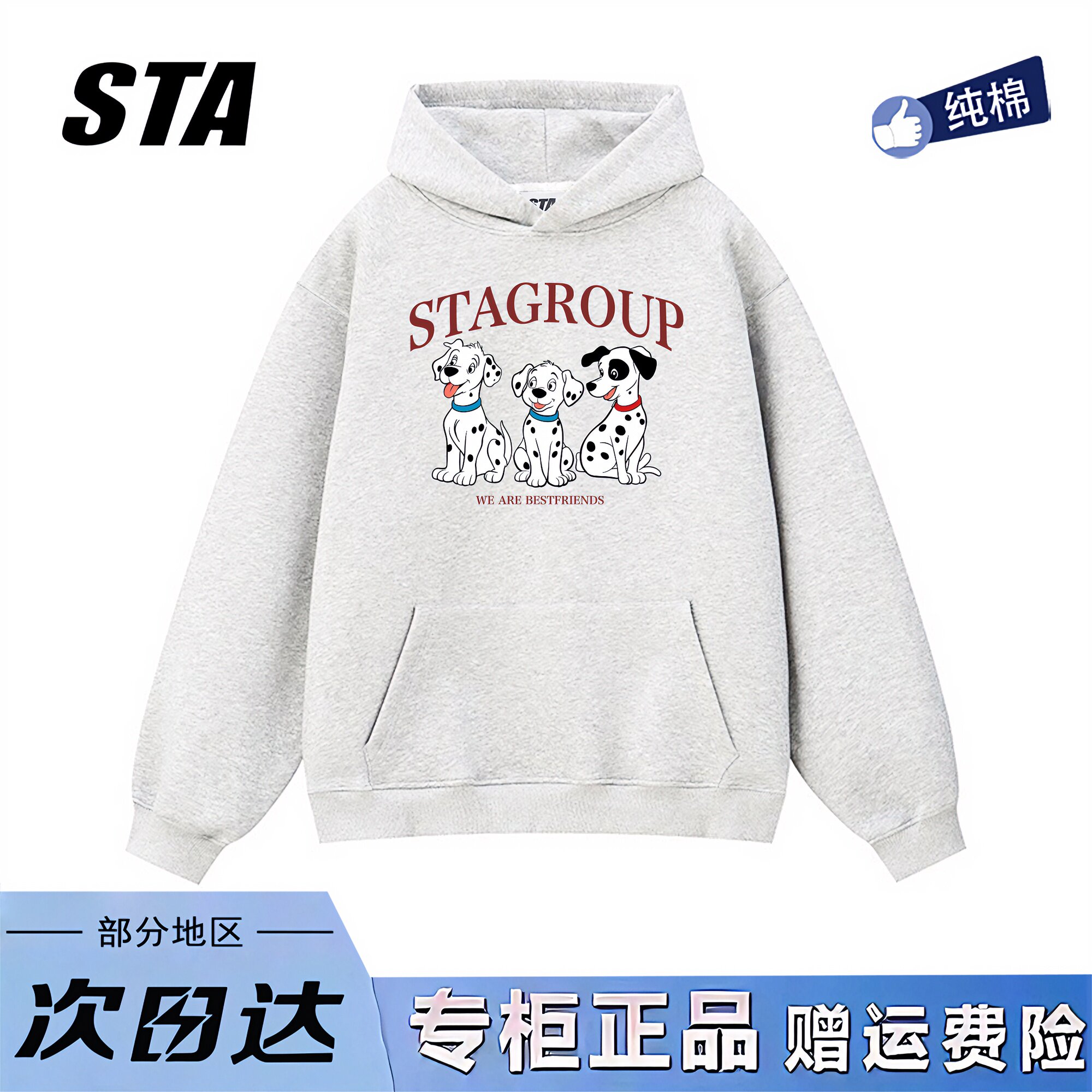 STA旗舰店美式复古斑点狗印花连帽卫衣男女潮牌重磅纯棉情侣外套