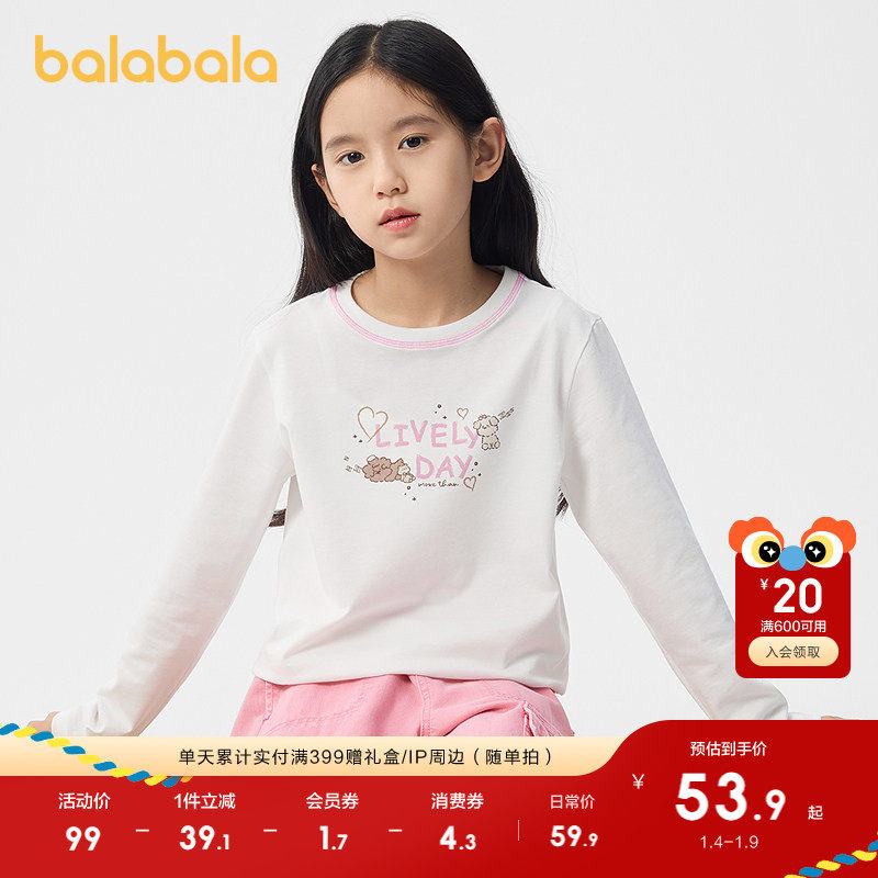巴拉巴拉童装女童长袖t恤儿童2025春秋新款上衣萌趣休闲打底衫潮