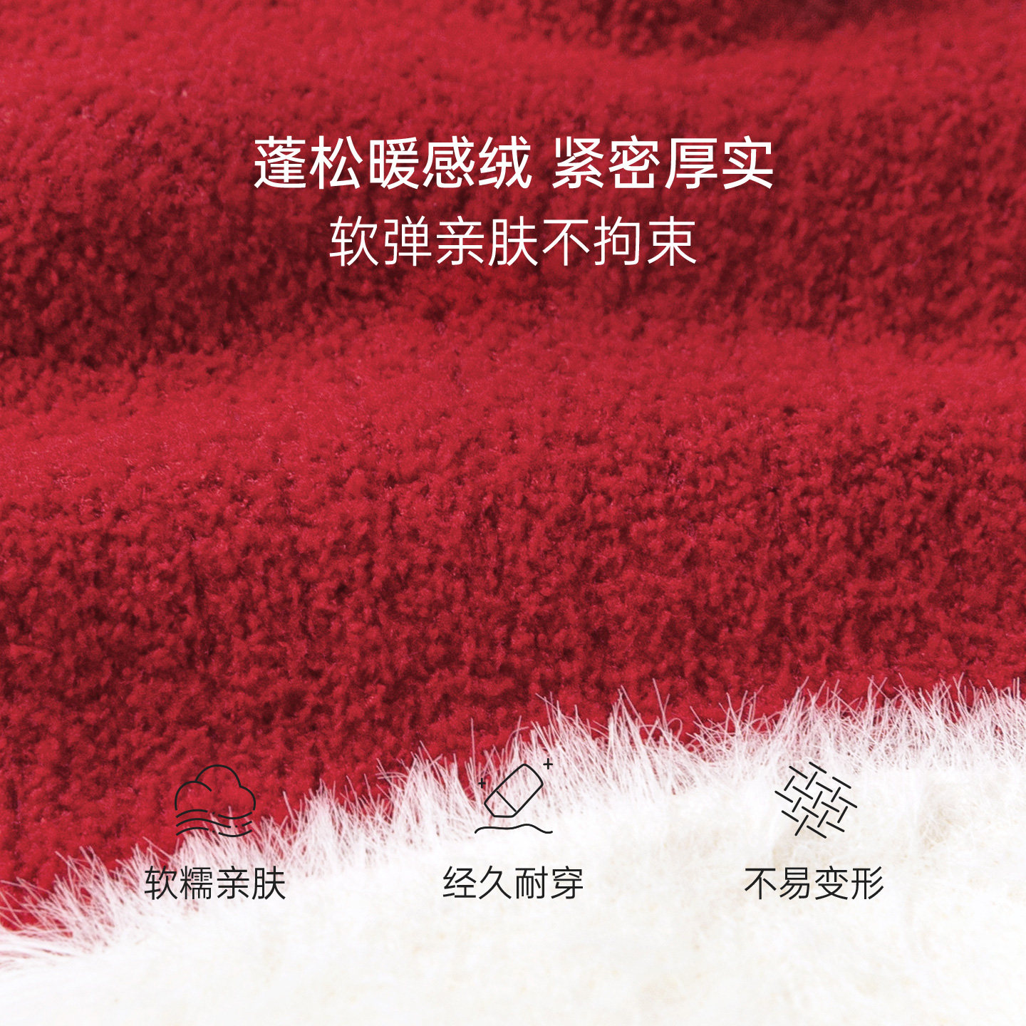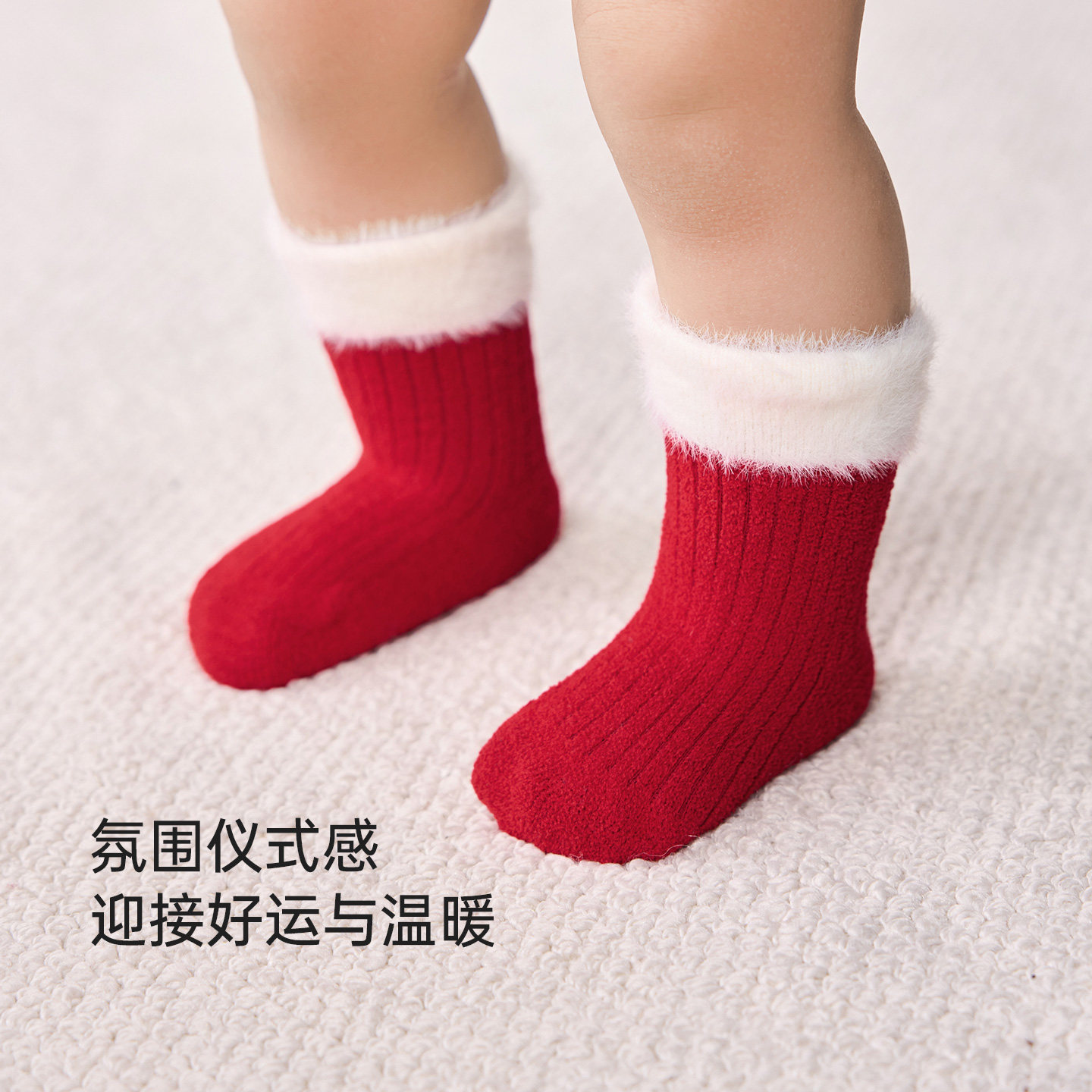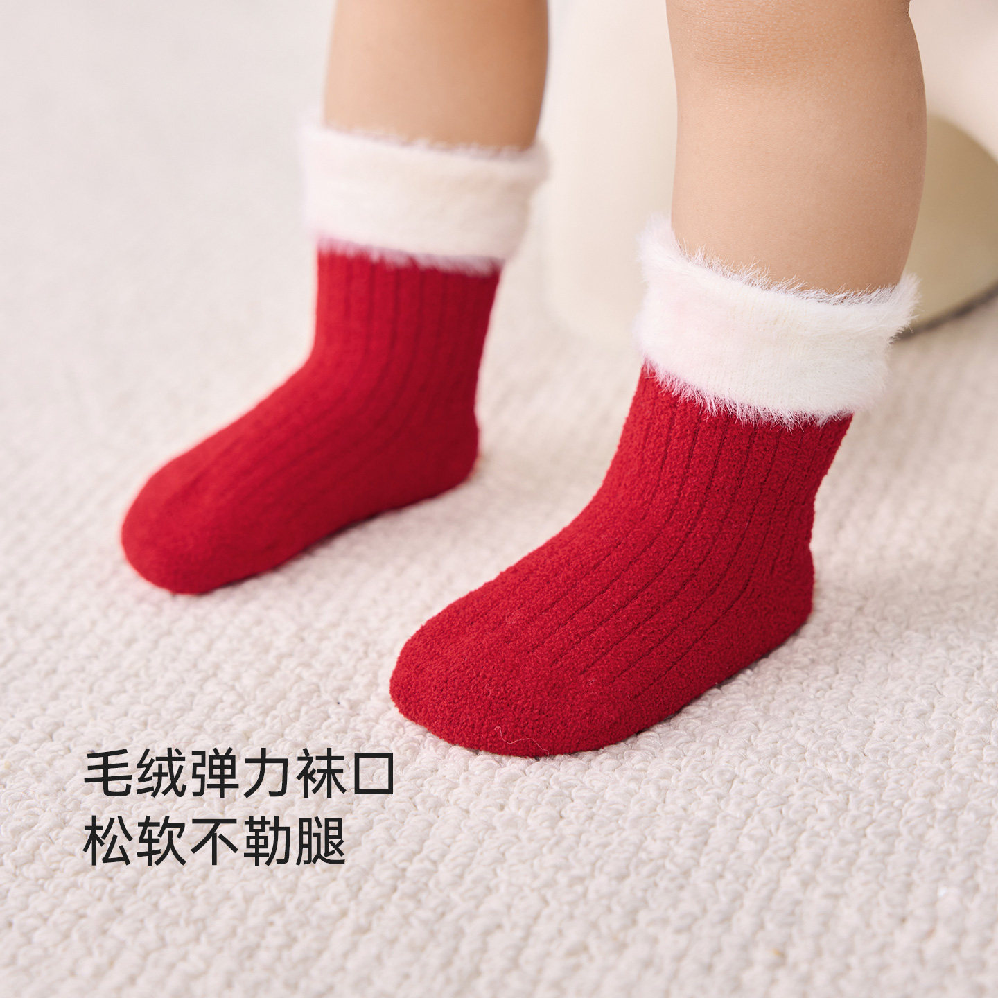 babylove婴儿红色袜子冬季毛绒袜加厚保暖袜宝宝弹力袜新年中筒袜
