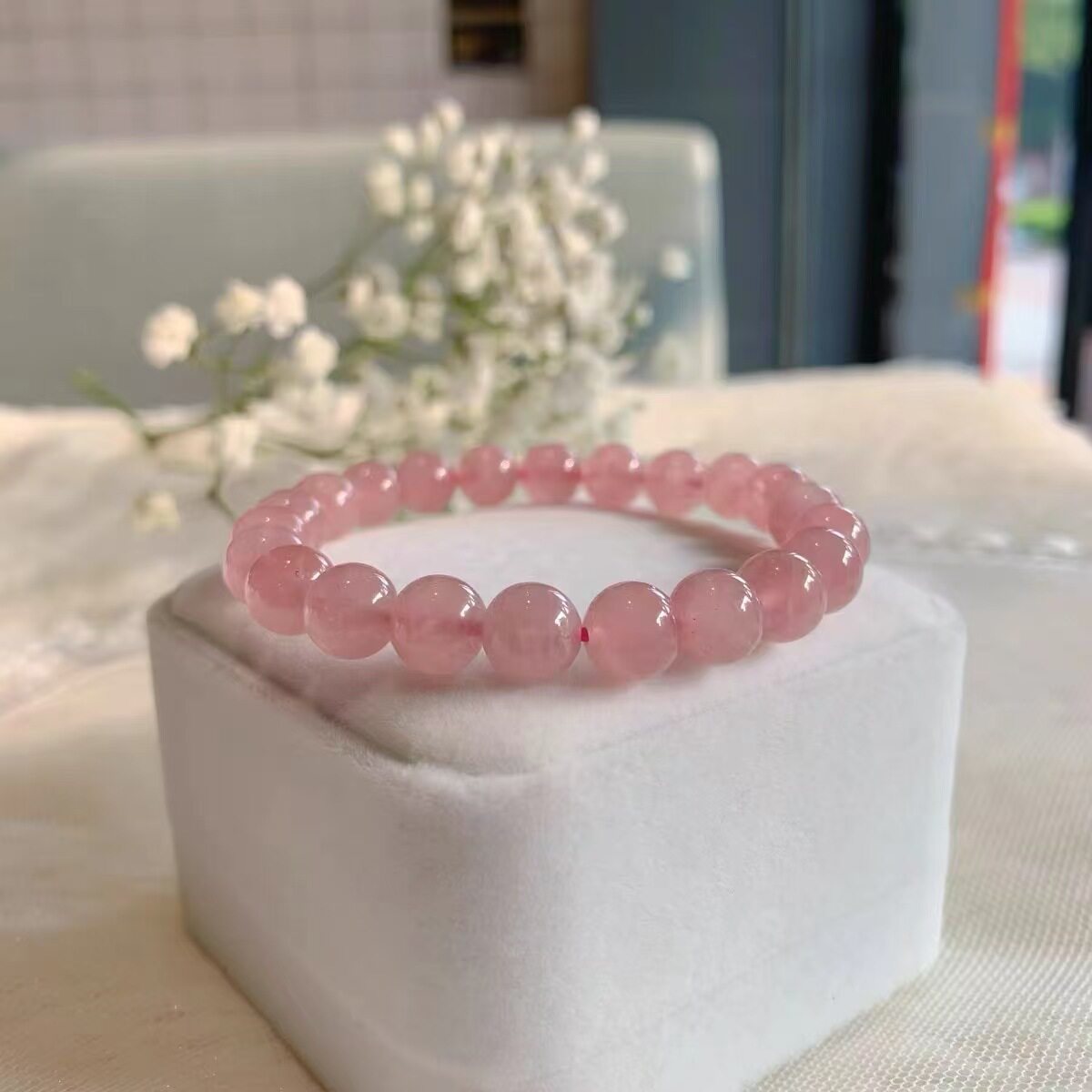 oein天然马达加斯加岛马粉粉水晶手链优质芙蓉石水晶手链