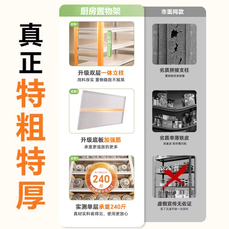 厨房置物架落地多层收纳架子家用多功能储物架一体靠墙货架仓库
