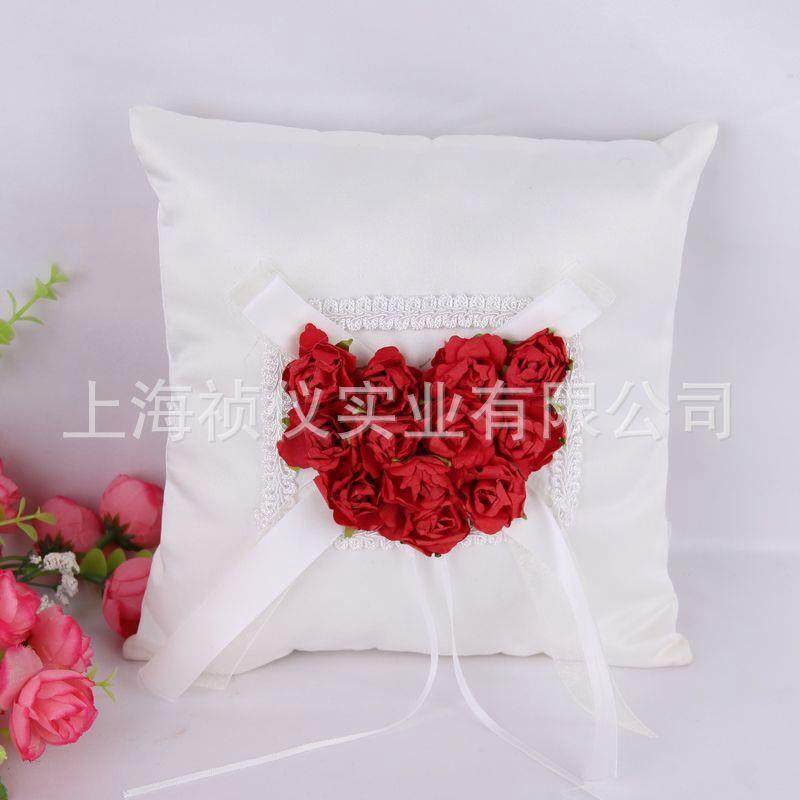 西式婚礼用品红色心形玫瑰花婚礼戒枕鸵鸟毛签到笔套装结婚用品