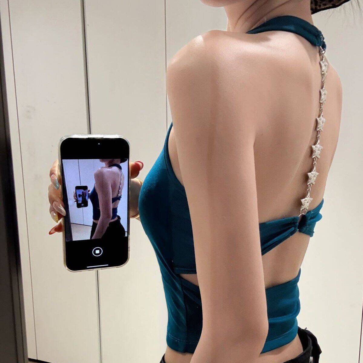3MER哦哦三妹 法式露背气质波点挂脖吊带背心春夏显瘦无袖上衣女
