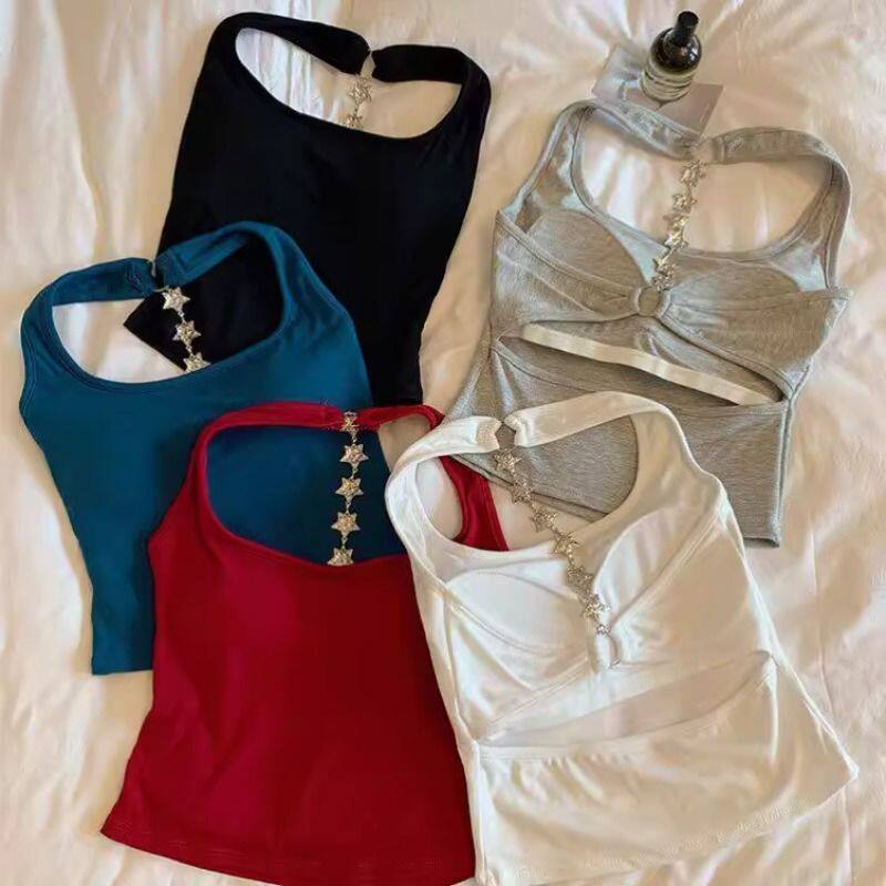 辣妹风挂脖吊带性感露背美背背心带胸垫外穿打底抹胸白色黑色红色